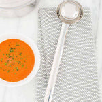 Dress up your dishes with our Met Lux 4-Ounce Stainless Steel Heavy-Duty Serving Ladle. Crafted with stainless steel, this serving ladle offers superior strength to resist daily wear and tear without the risk of rusting or corroding over time. With a 4-ounce capacity, this stainless steel spoon guarantees uniform servings of your delectable sauces. This serving spoon features a long ergonomic handle to provide a secure and comfortable grip while serving. Dishwasher-safe, this sauce spoon makes the cleaning process straightforward and convenient. Measuring 14 inches long by 3 inches wide by 1.25 inches tall, this soup spoon can hold up to 4 ounces. Sold in a 1 count box.