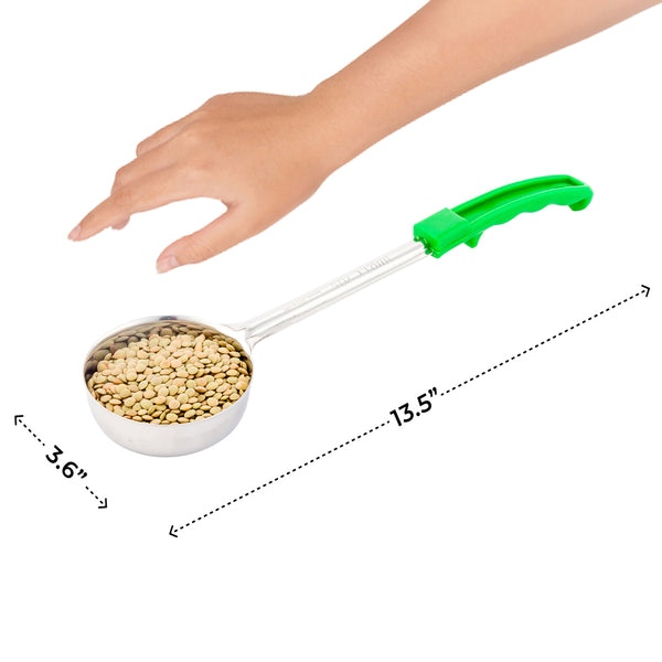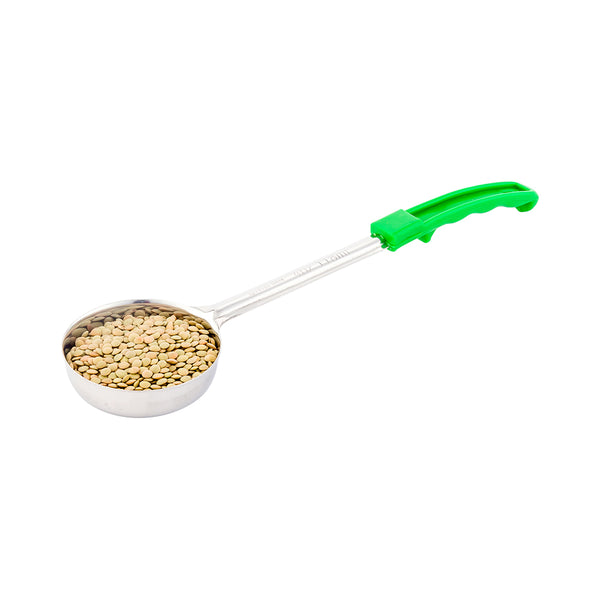 4 OZ STAINLESS STEEL SPOODLE - SOLID, WITH GREEN HANDLE