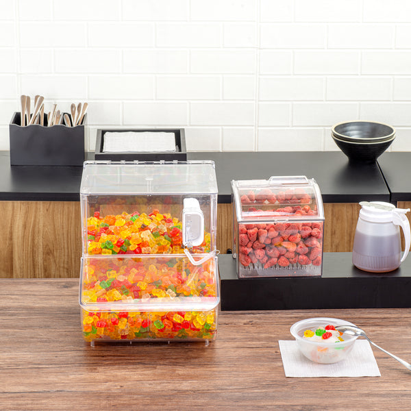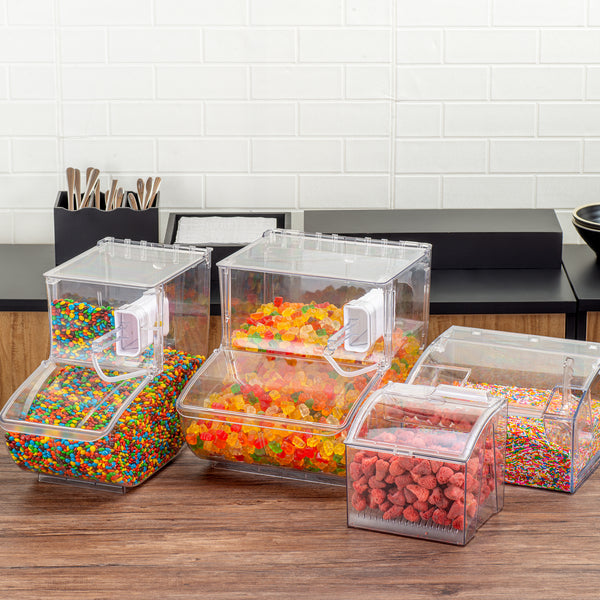 5.25 GAL CLEAR PLASTIC TOPPING BIN - 80 CUP, WITH SCOOP