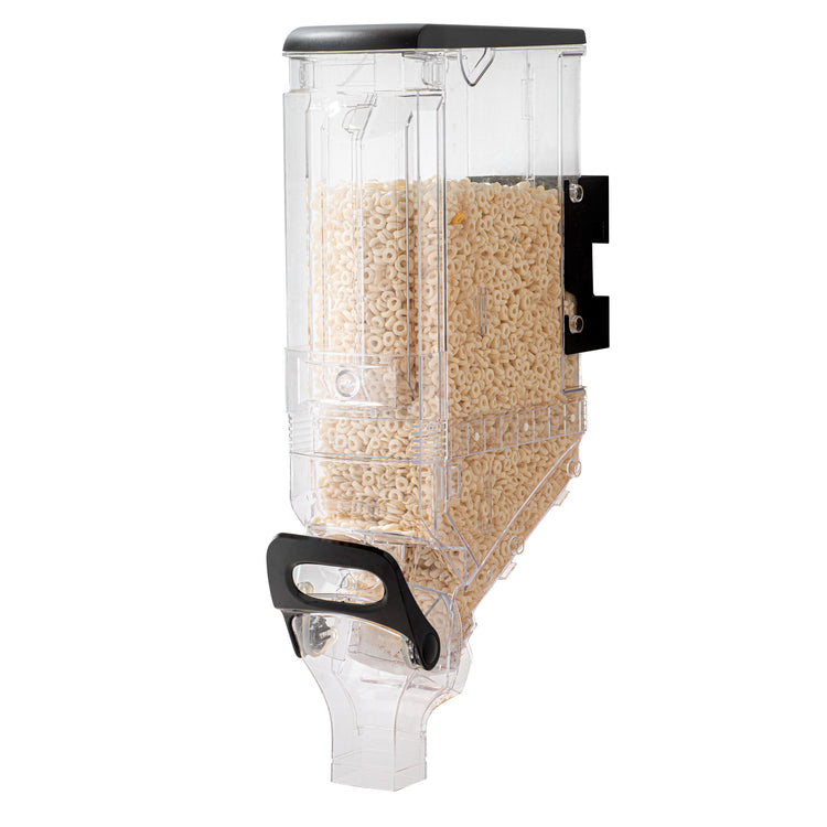 5 GAL BLACK PLASTIC WALL MOUNT CEREAL DISPENSER