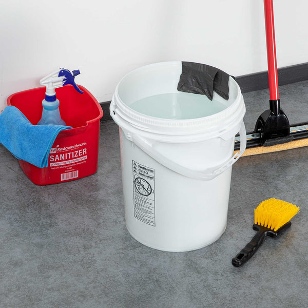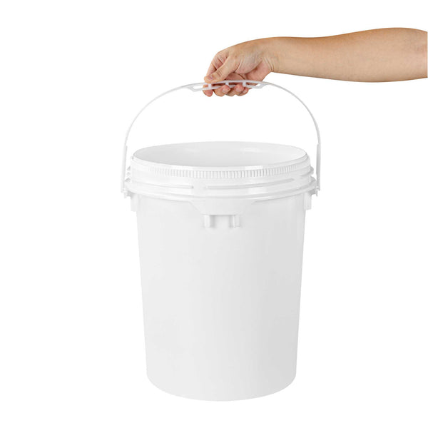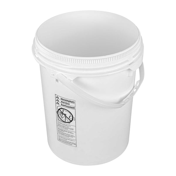 Streamline your storage and transportation needs with our Met Lux 5-gallon Round White Plastic Screw Top Pail. This screw top pail is UN rated, ensuring it meets stringent standards for safe transport and storage. Crafted from FDA-compliant plastic, this screw top bucket ensures durability and safety for a variety of applications. Pair this tamper-evident screw top bucket with its compatible lid (RWT2043W) to secure the contents inside. This bucket includes an airtight gasket for moisture resistance, ensuring that contents remain dry and safeguarded from environmental elements. With an attached handle, this pail offers easy carrying and convenient transport, making it ideal for various tasks in the foodservice industry. Measuring 11.25 inches in diameter by 15.25 inches in height, this bucket has a total capacity of 5 gallons, providing ample space for your storage needs. Sold in a 1 count box. Lid is available and sold separately.