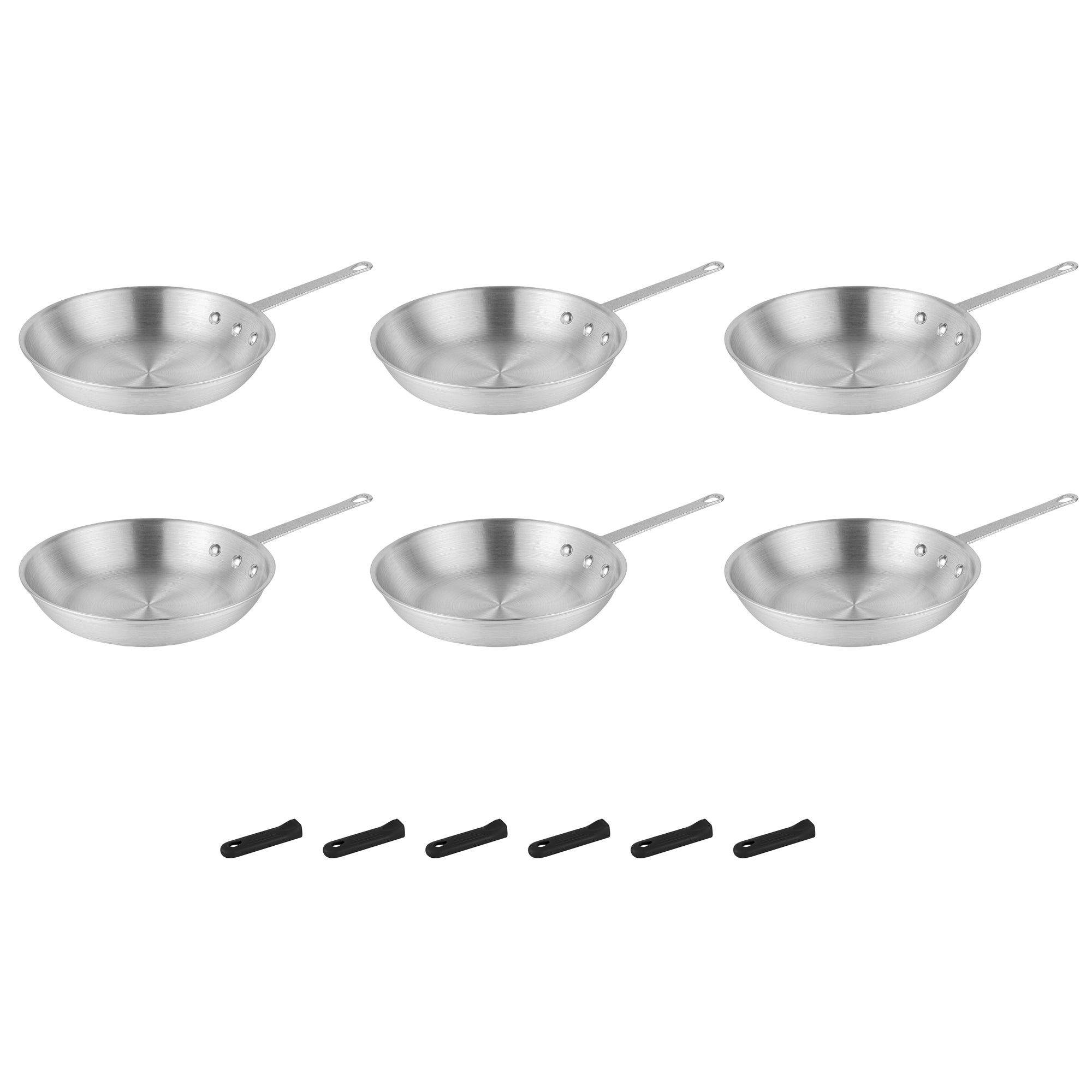 6 ALUMINUM 10" FRY PANS AND 6 BLACK SLEEVES