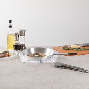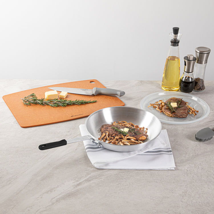 - Triple-riveted handle provides a secure grip and improved control while cooking