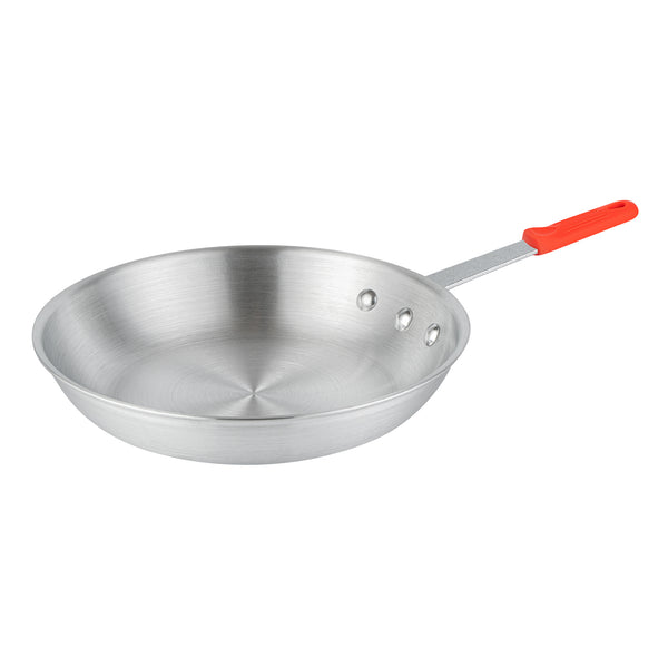 6 ALUMINUM 10" FRY PANS AND 6 RED SLEEVES