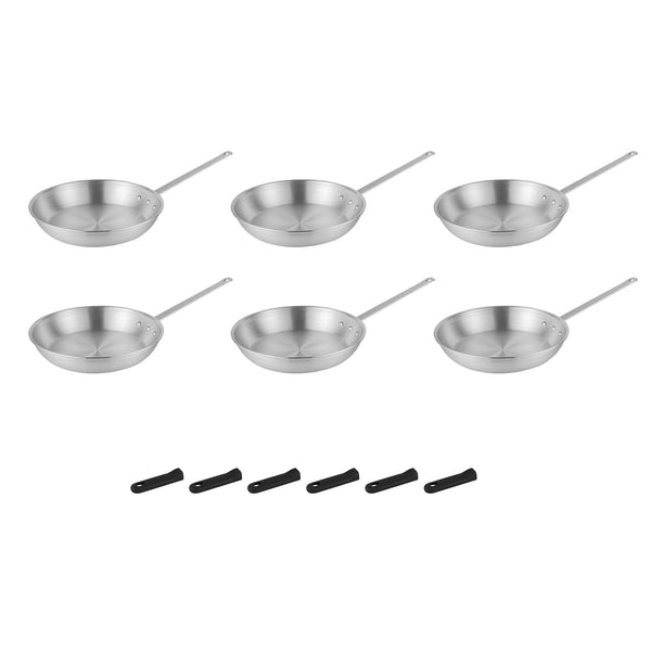 6 ALUMINUM 14" FRY PANS AND 6 BLACK SLEEVES