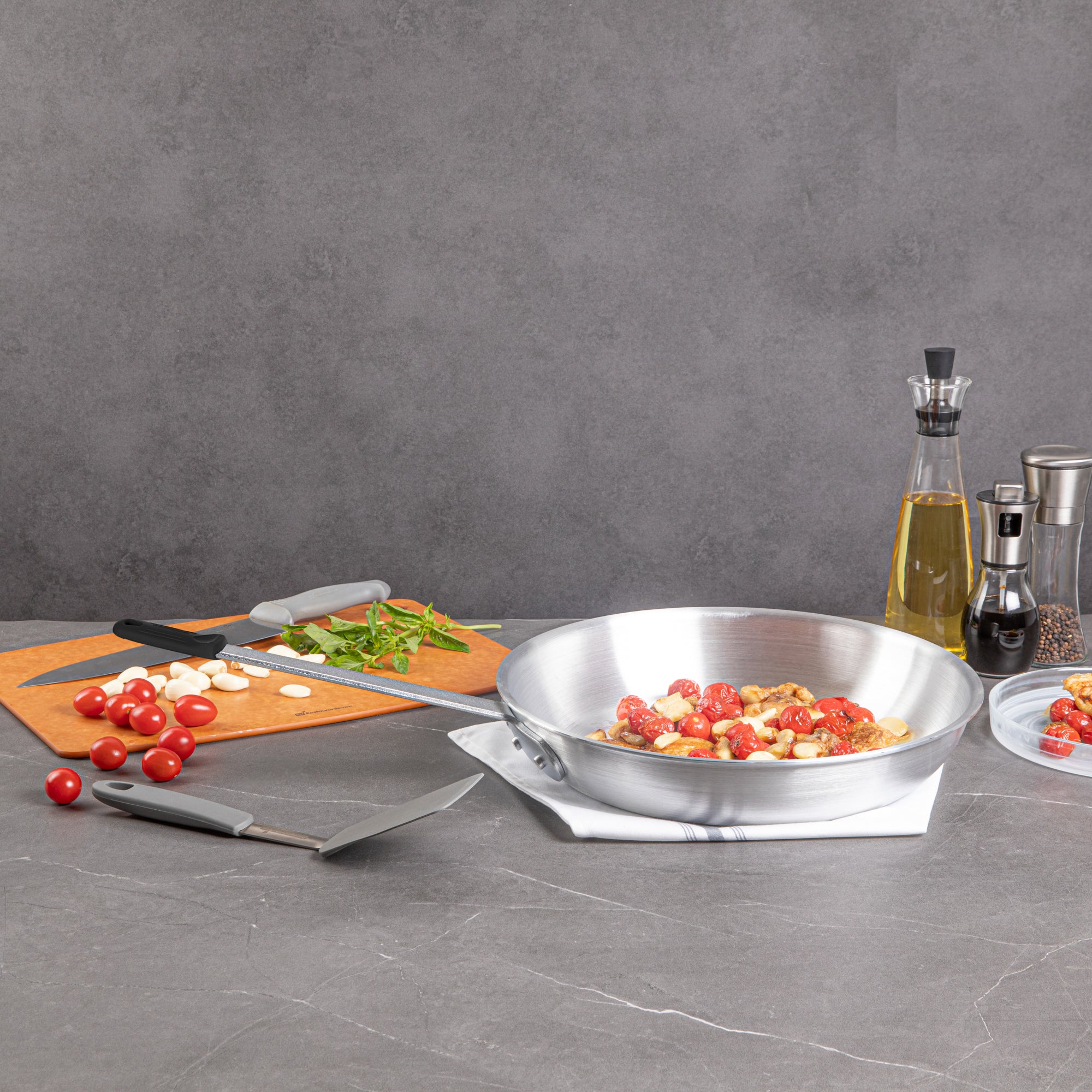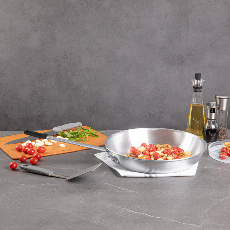 - 3.5 mm thick aluminum evenly distributes heat for consistent cooking results