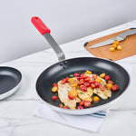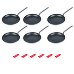 6 ALUMINUM 16" INDUCTION READY FRY PANS AND 6 RED SLEEVES