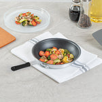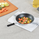- 3 mm thick aluminum evenly distributes heat for consistent cooking results