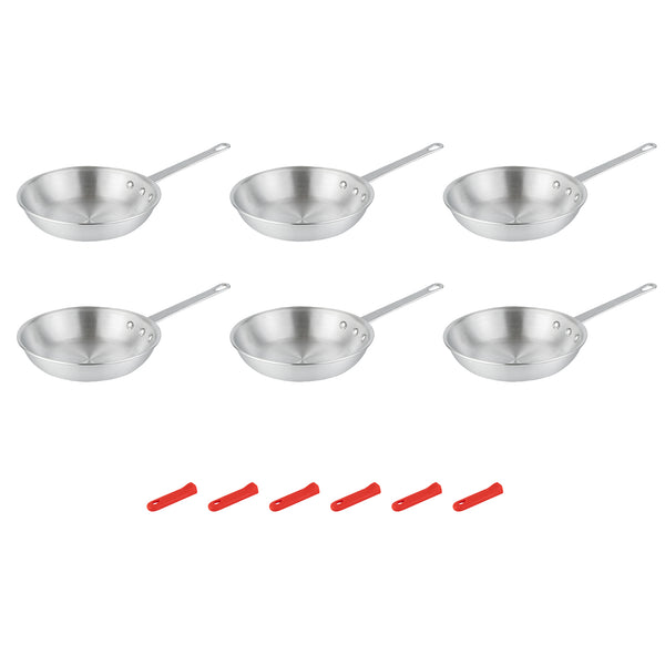 6 ALUMINUM 9" FRY PANS AND 6 RED SLEEVES