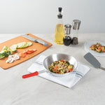 Flip pancakes with our Bundle: Met Lux 6 Aluminum 9" Fry Pans with 6 Red Silicone Pan Handle Sleeves. Crafted from 3.5 mm thick aluminum, these frying pans ensure even heat distribution, delivering perfectly cooked dishes every time. The lightweight design of these fry pans allows for easy flipping and maneuvering of your favorite meals, reducing fatigue during extended cooking sessions. Featuring a satin finish, these aluminum fry pans are perfect for searing and browning, bringing out the best flavors in your ingredients. Built with a sturdy, triple-riveted handle, these skillet pans offer a secure grip, making cooking and transporting hot pans safer. Integrated hanging holes on the skillet pans provide convenient storage and quick access, saving valuable kitchen space. These aluminum skillets are best maintained through hand washing, ensuring optimal care and longevity. With a heat resistance of up to 450F, these silicone sleeves protect your hands from burns, ensuring secure handling of hot pans. The molded indentations on these pan handle sleeves offer a firm grip, minimizing accidental slippage while cooking. These removable handle sleeves allow you to switch between cookware effortlessly. Measuring 14.57 inches in length by 8.66 inches in width by 2.95 inches in height, these aluminum saute pans provide ample room for cooking a variety of dishes. Each order includes 6 pans and 6 sleeves.