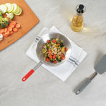 - Triple-riveted handle provides a secure grip and improved control while cooking