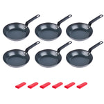 6 BLACK CARBON STEEL 8" PRE-SEASONED FRY PANS AND 6 SLEEVES