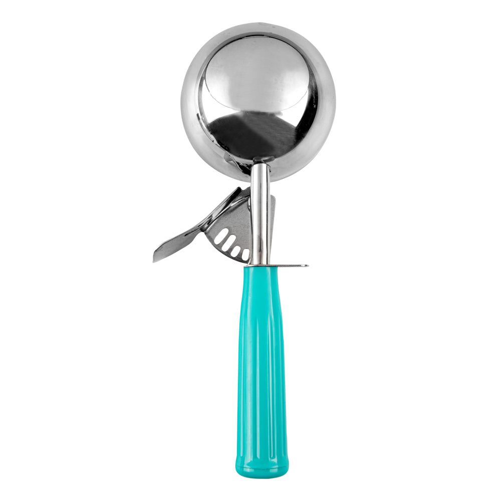 6 OZ STAINLESS STEEL #5 PORTION SCOOP - WITH TEAL HANDLE