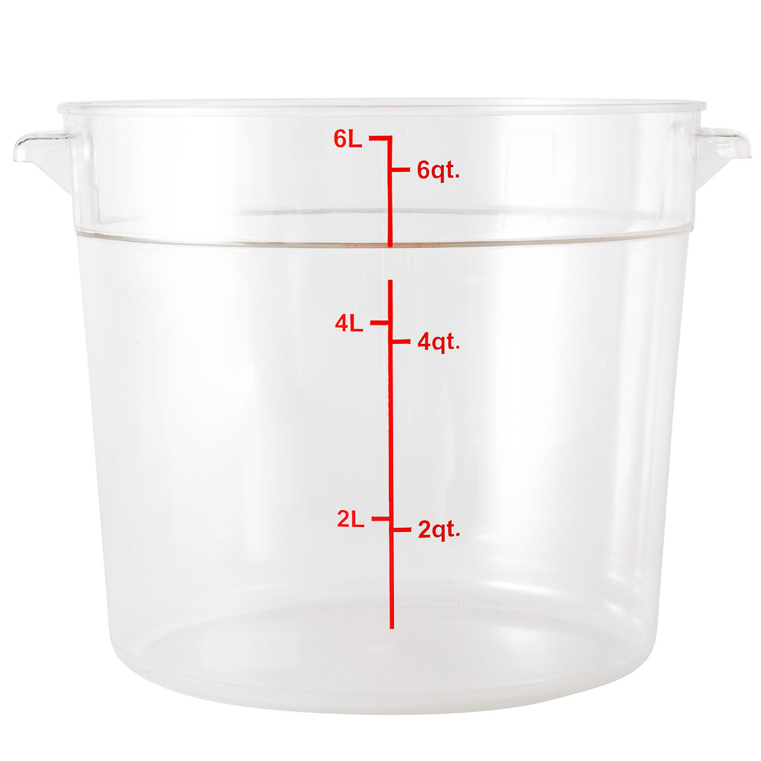 6 QT CLEAR PLASTIC FOOD STORAGE CONTAINER - WITH RED VOLUME MARKERS