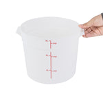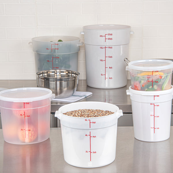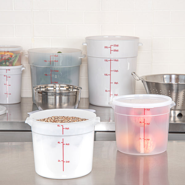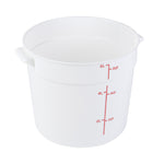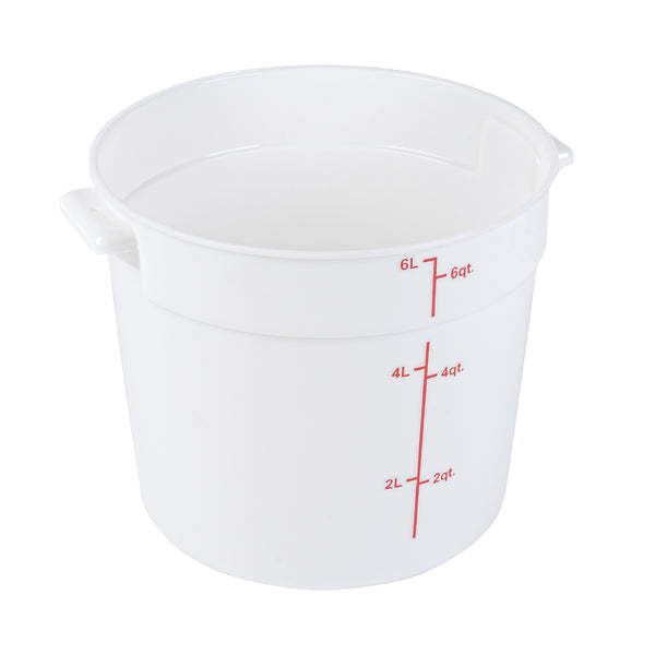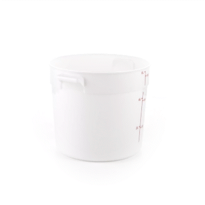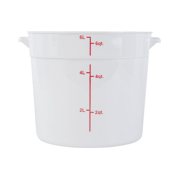 Take organization and quality control to the next level with our Met Lux 6-quart Round White Plastic Food Storage Containers. Crafted from robust pp plastic, these food storage containers offer longevity and can withstand temperatures ranging from -40 to 160 degrees Fahrenheit, making them an ideal choice for any culinary environment. For convenience and precision, these plastic food storage containers feature red volume markers, allowing easy measurement of contents. These storage containers' design incorporates stable handles, enabling easy transport and maneuverability around the kitchen. Pair with our lids (SKU: RWT1575C) that are compatible with these round plastic food containers, ensuring freshness. Showcasing a white design, these storage containers enable quick and easy identification of contents, saving you valuable time in a busy kitchen setting. Boasting a functional capacity of 6 quarts, these round plastic containers are perfect for storing large quantities of ingredients, while their compact dimensions of 8.75 inches in diameter by 7.75 inches in height allow for efficient space utilization. Compatible with both dishwasher and freezer, these versatile food containers are designed for effortless cleaning and long-term food storage. Sold in a 10 count box. Lids are available and sold separately.