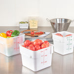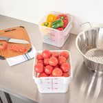Effortlessly manage portion control and minimize waste in your kitchen. The Met Lux Plastic Food Container features red graduations that enable precise portion control, ensuring you cut down on unnecessary waste for efficient kitchen operations. Equipped with stable handles, this container ensures spill-free transport, making it ideal for busy settings where maintaining order with a plastic food container is critical. Made from durable PP plastic, this square storage container is designed to withstand the demands of high-volume kitchens while maintaining its integrity over time. Its dishwasher-safe design simplifies cleaning, allowing for effortless maintenance and hygiene management. With dimensions of 8.88 inches in length, width, and a height of 7.5 inches, this container is both hot food-friendly and cold food-friendly, providing versatile storage solutions. Enhance your kitchen's efficiency with this container. Each order includes 10 Met Lux Plastic Food Containers.