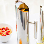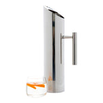 Add a splash of refined luxury to any setting with this Met Lux Stainless Steel Water Pitcher. Combining contemporary design with sleek lines, this modern water pitcher will add an impressively striking touch of style to your water or beverage service. Its built-in ice guard enables smooth, accurate, and splatter-free pouring, while its smooth and cylindrical handle provides a secure way to transport and pour your beverages. Constructed from high-quality stainless steel, this large pitcher is built to withstand commercial-use in restaurants, cafes, hotels, catering companies, and other foodservice establishments. Each of these stainless steel pitchers has a total capacity of 67 ounces. Shipped in a 1 count box.