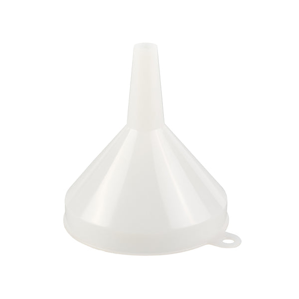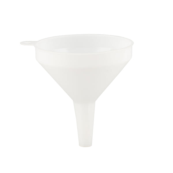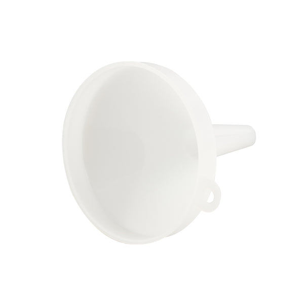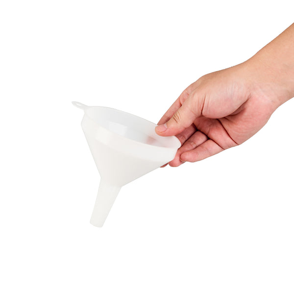 Our Met Lux 8-ounce White Plastic Funnel is the perfect tool for your kitchen needs. This durable polyethylene plastic funnel ensures long-lasting use and reliability. Designed with a spill-reducing feature, these funnels allow for clean and efficient liquid transfer. The wide top diameter of this large kitchen funnel makes it easy to pour ingredients without mess. Ideal for multi-purpose use, these white plastic funnels are perfect for both home and commercial kitchens. With an optimal capacity, this 8-ounce funnel is suitable for transferring various liquids and dry ingredients. Measuring 0.55 inches in length by 0.55 inches in width by 4.45 inches in height, these food-safe funnels are compact and easy to store. Sold in a 1 count box.