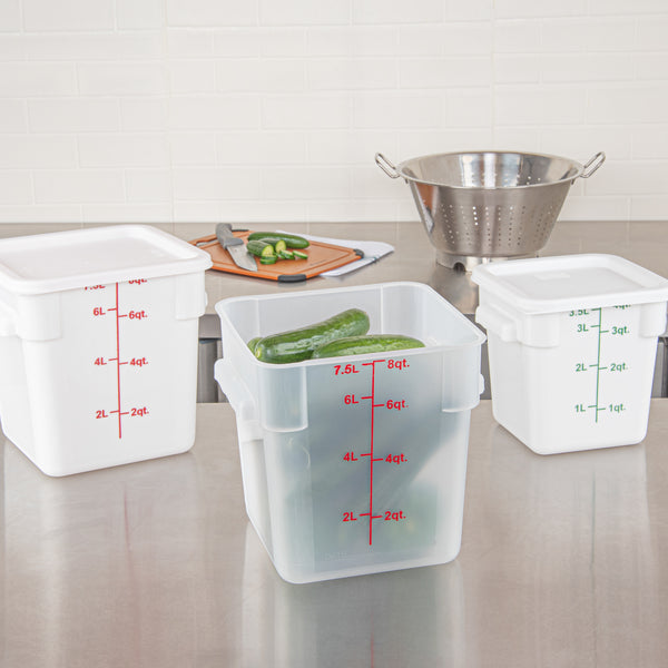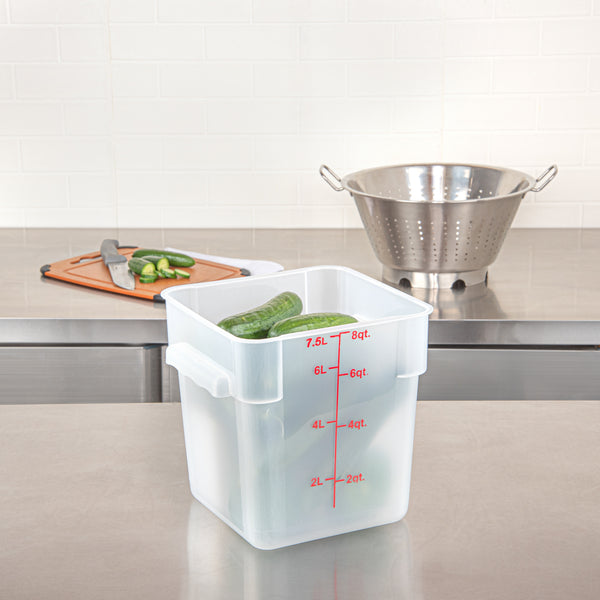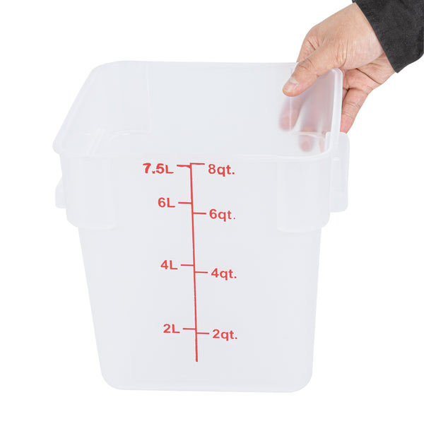 Met Lux 8 qt Square Translucent Plastic Food Storage Container - with Red Volume Markers - 8 3/4