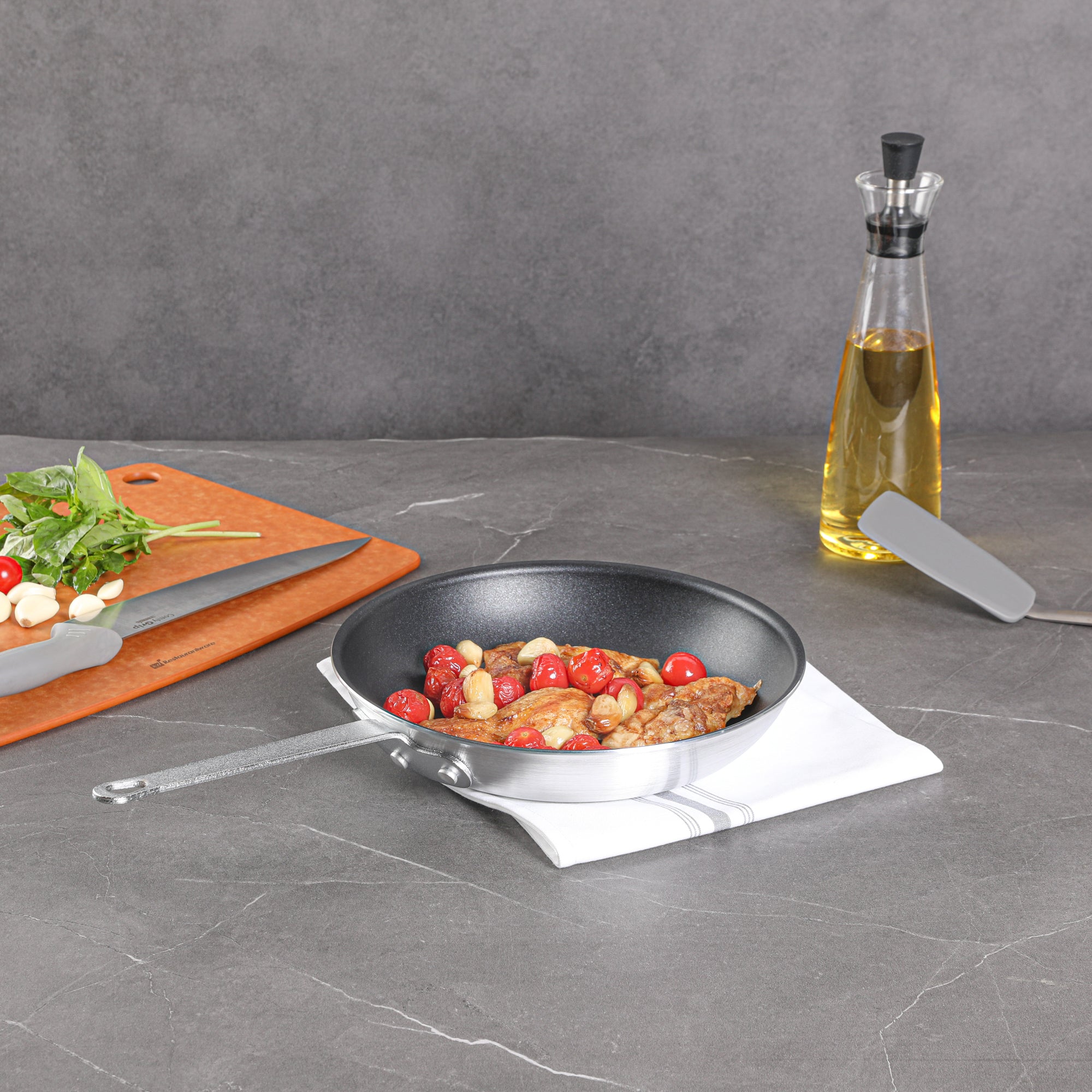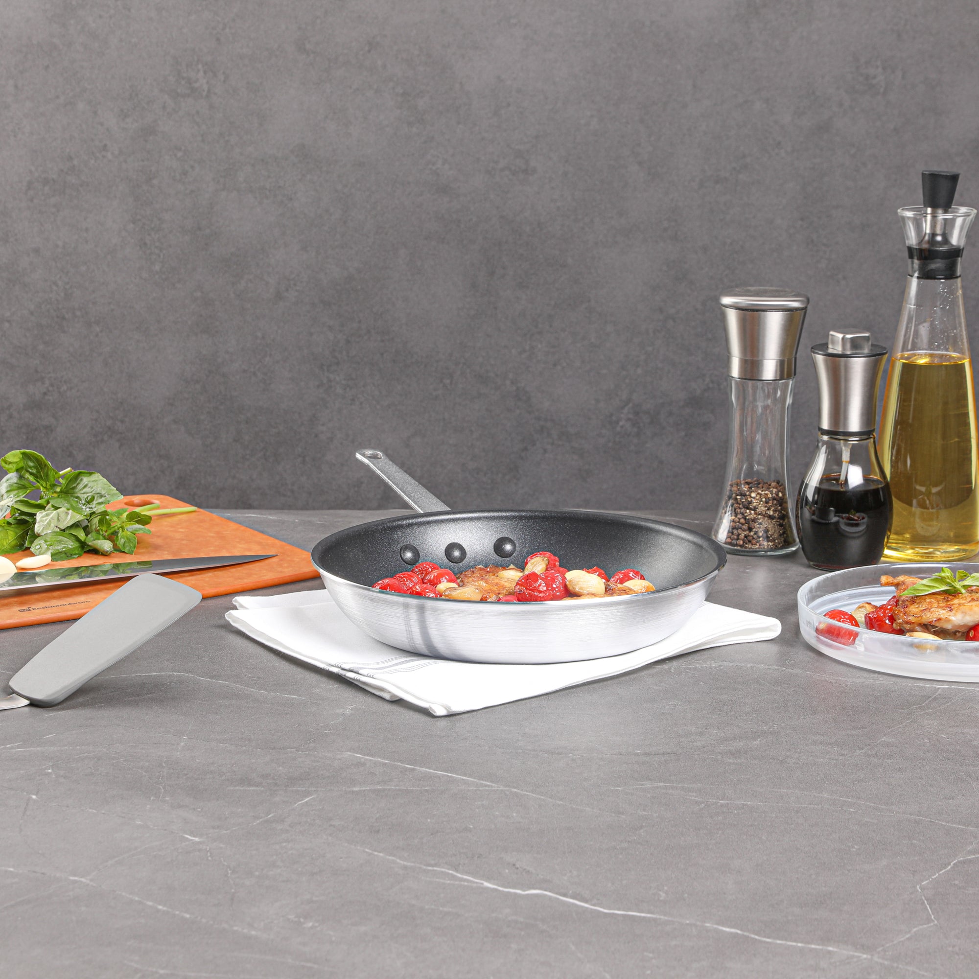 Streamline your kitchen operations with versatile cookware solutions. The Met Lux Non-Stick Fry Pan features a superior non-stick coating that ensures easy food release and quick cleanup, optimizing kitchen efficiency. Crafted from durable aluminum, this 10-inch frying pan provides rapid and even heat distribution, reducing cooking times and energy usage in busy foodservice environments. With its induction-safe design, this aluminum non-stick skillet accommodates various cooking styles, making it an ideal choice for restaurant kitchens and catering services. The ergonomic, triple-riveted handle offers a secure grip and added durability, enhancing maneuverability and reducing strain during extended use. Whether sautéing vegetables or searing meats, this fry pan delivers consistent, reliable results every time. Elevate your culinary performance now by incorporating this essential non-stick fry pan into your cookware collection. Each order includes 1 Met Lux Non-Stick Fry Pan.