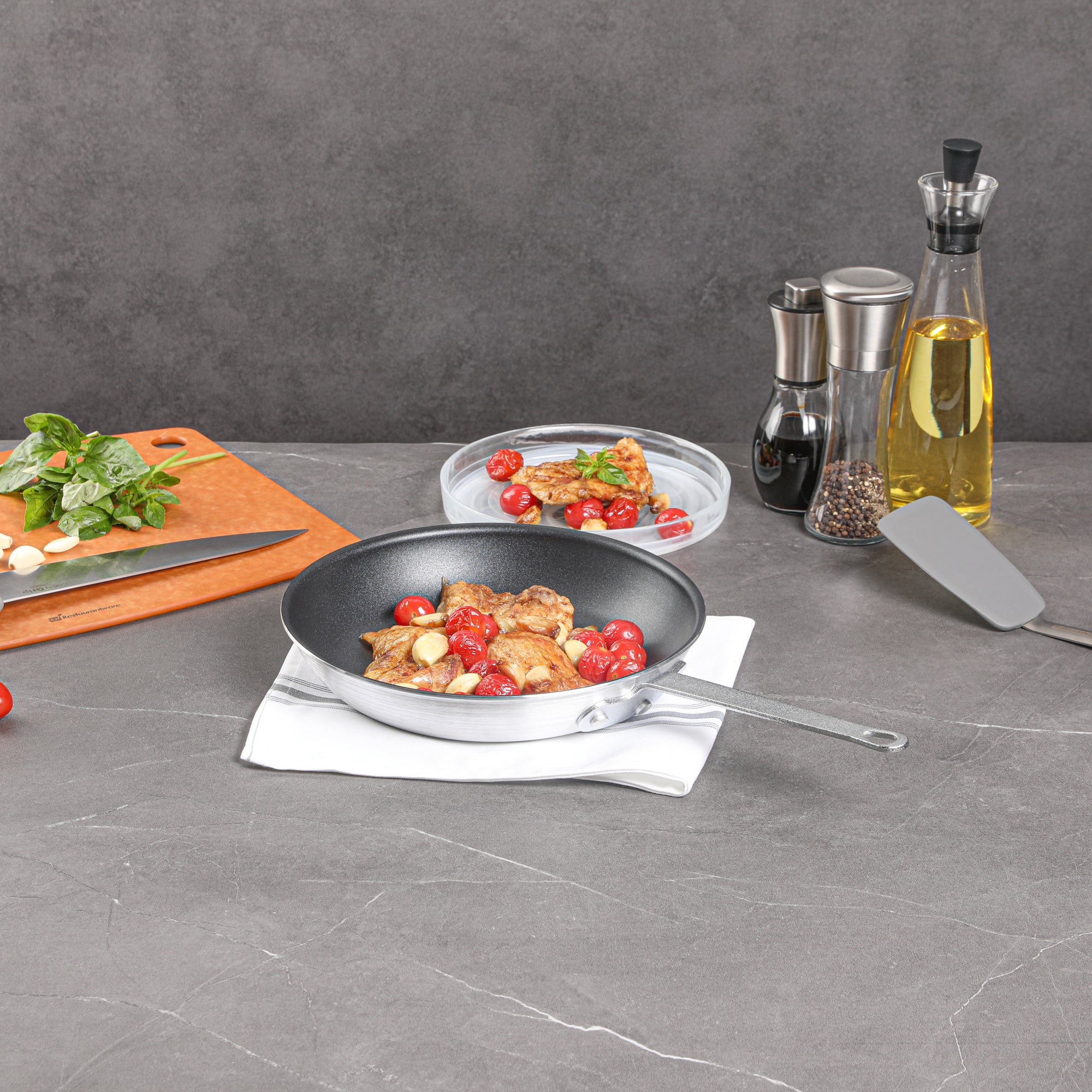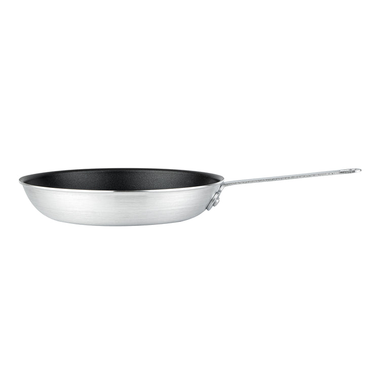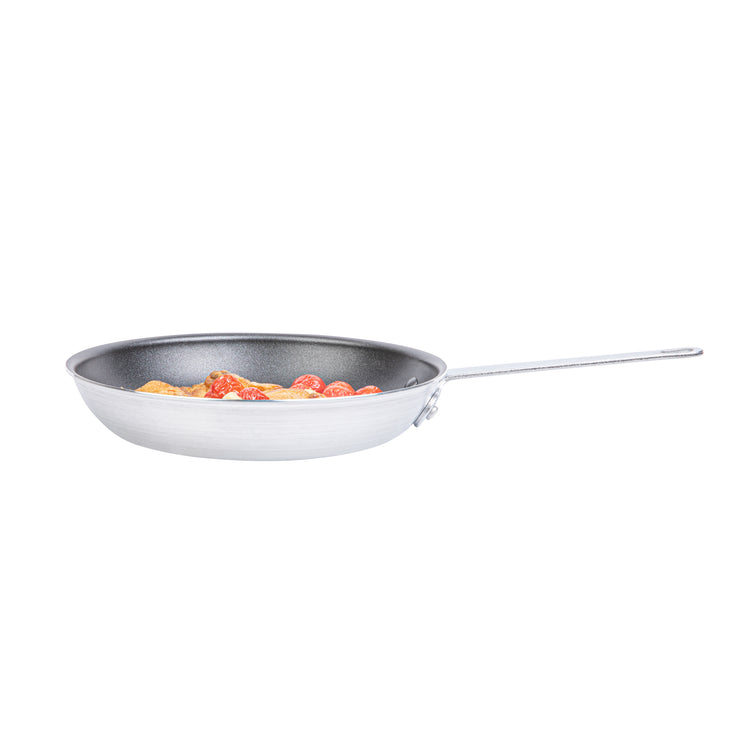 Streamline your kitchen operations with versatile cookware solutions. The Met Lux Non-Stick Fry Pan features a superior non-stick coating that ensures easy food release and quick cleanup, optimizing kitchen efficiency. Crafted from durable aluminum, this 10-inch frying pan provides rapid and even heat distribution, reducing cooking times and energy usage in busy foodservice environments. With its induction-safe design, this aluminum non-stick skillet accommodates various cooking styles, making it an ideal choice for restaurant kitchens and catering services. The ergonomic, triple-riveted handle offers a secure grip and added durability, enhancing maneuverability and reducing strain during extended use. Whether sautéing vegetables or searing meats, this fry pan delivers consistent, reliable results every time. Elevate your culinary performance now by incorporating this essential non-stick fry pan into your cookware collection. Each order includes 6 Met Lux Non-Stick Fry Pans.