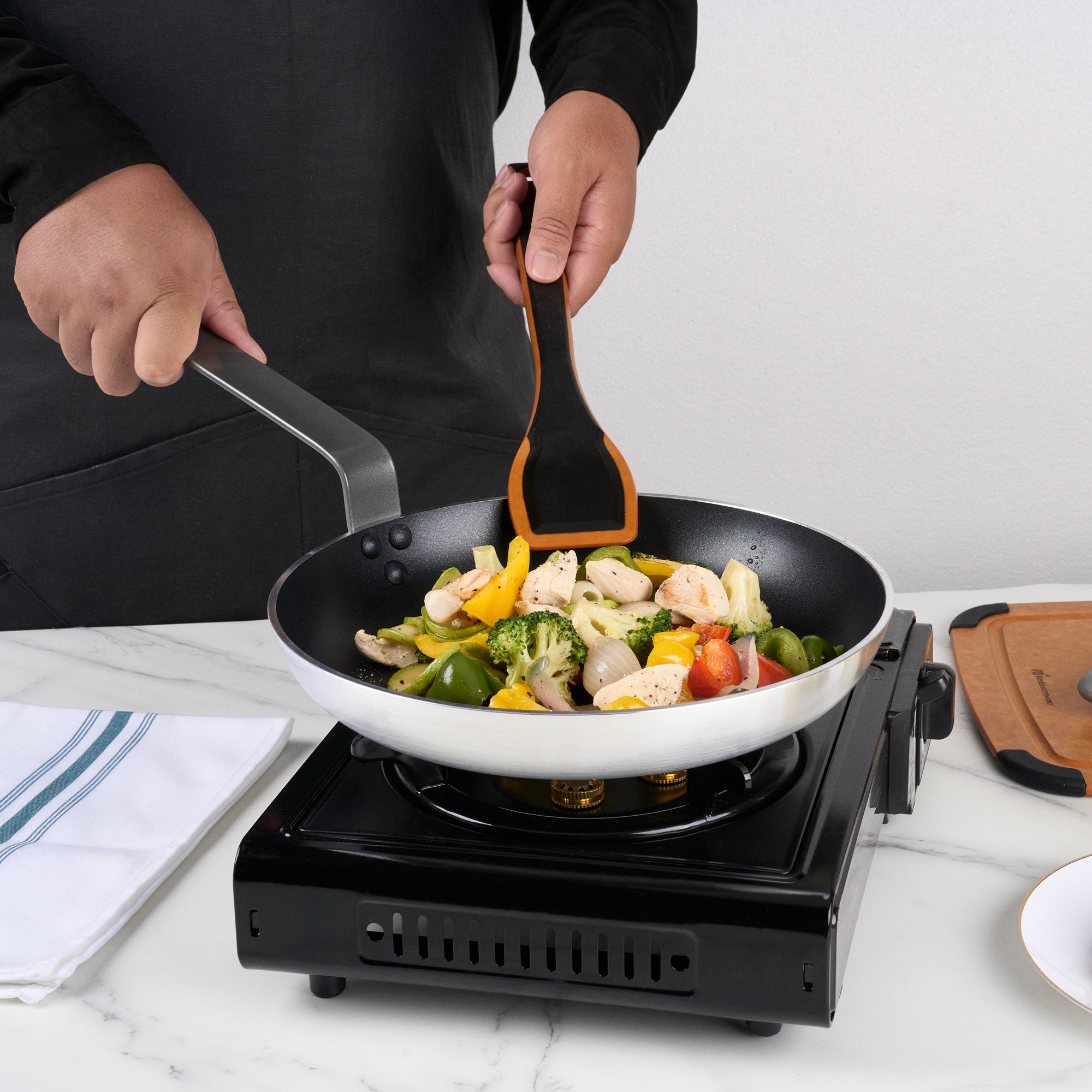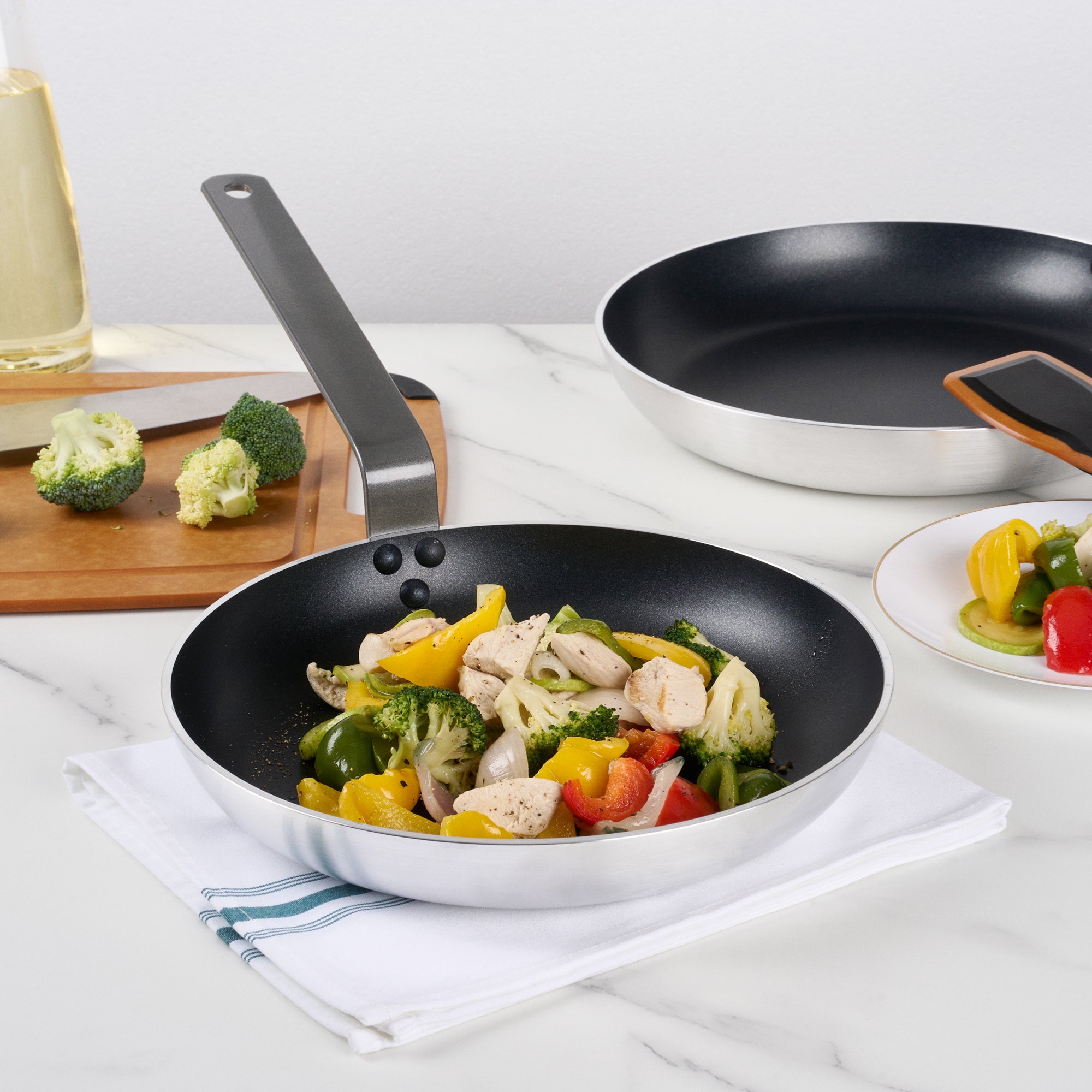 These fry pans have stainless steel bottom plates and are compatible with induction, ceramic, and electric cooktops. Use their versatility to enhance your cooking convenience.