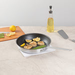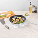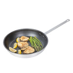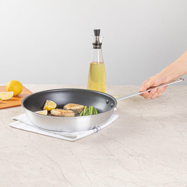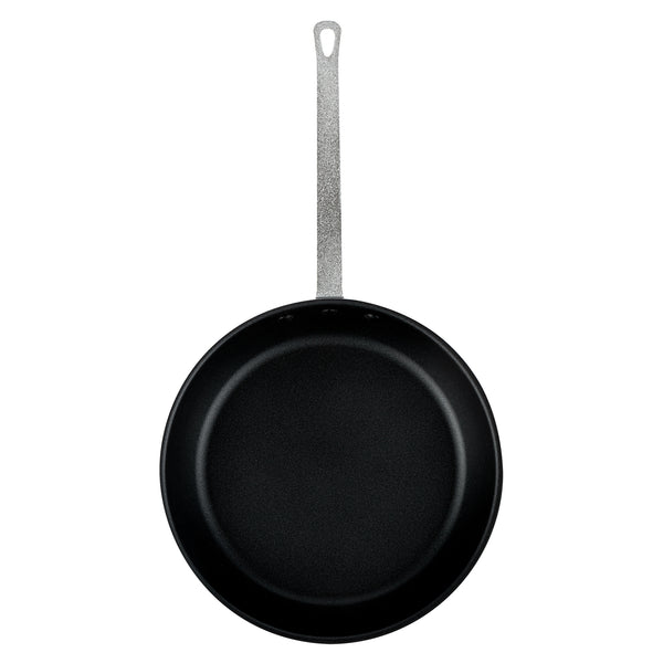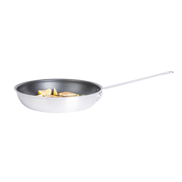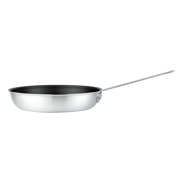 Experience the pinnacle of culinary performance with our Met Lux Aluminum 12-inch Fry Pan. This PTFE non-stick fry pan, crafted from 3 mm thick aluminum, is designed to provide excellent heat distribution for even cooking. Lightweight yet durable, this aluminum fry pan is a kitchen essential for any foodservice establishment. The triple-riveted handle of this frying pan ensures a secure grip for secure handling, enhancing the ease and comfort of your cooking experience. Plus, this skillet pan is induction-safe, opening up a world of versatile cooking options. The sleek black finish of this non-stick pan adds a touch of sophistication to your kitchen decor. With a convenient hanging hole, this aluminum skillet provides an efficient storage solution for crowded kitchen spaces. To preserve its premium non-stick surface, this fry pan is hand-washable only. This 12-inch fry pan, including the handle, measures 22.25 inches in length by 4 inches in height, offering ample cooking space for your culinary creations. Sold in a 1 count box.