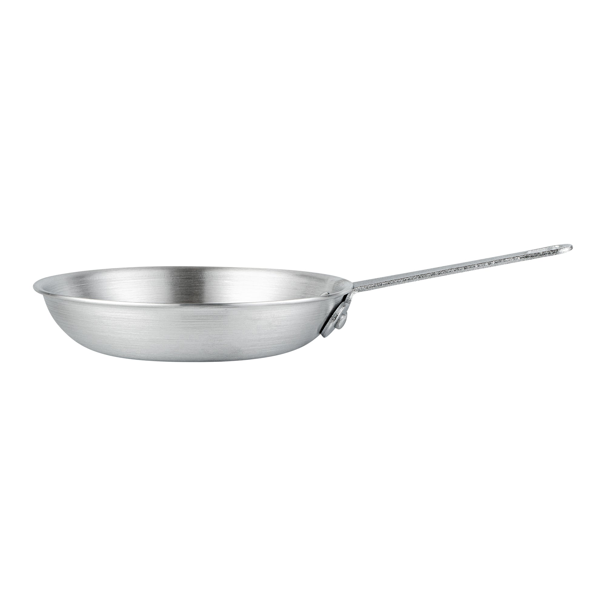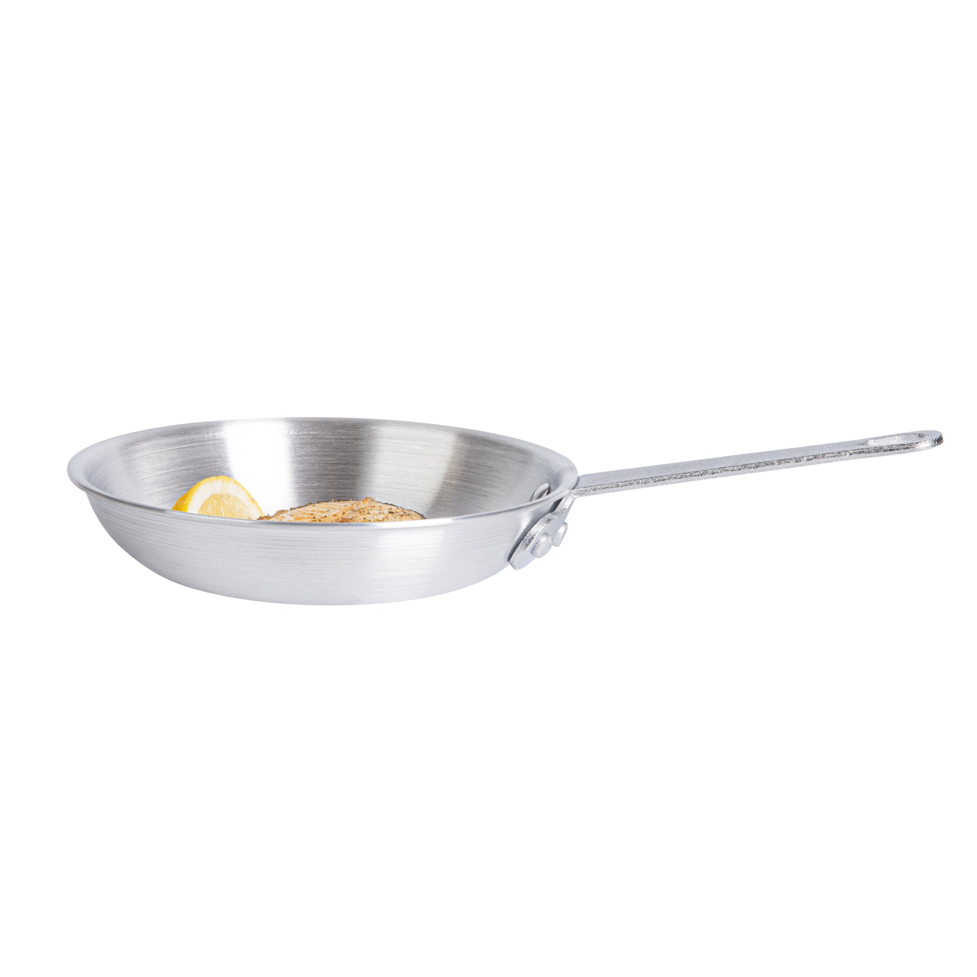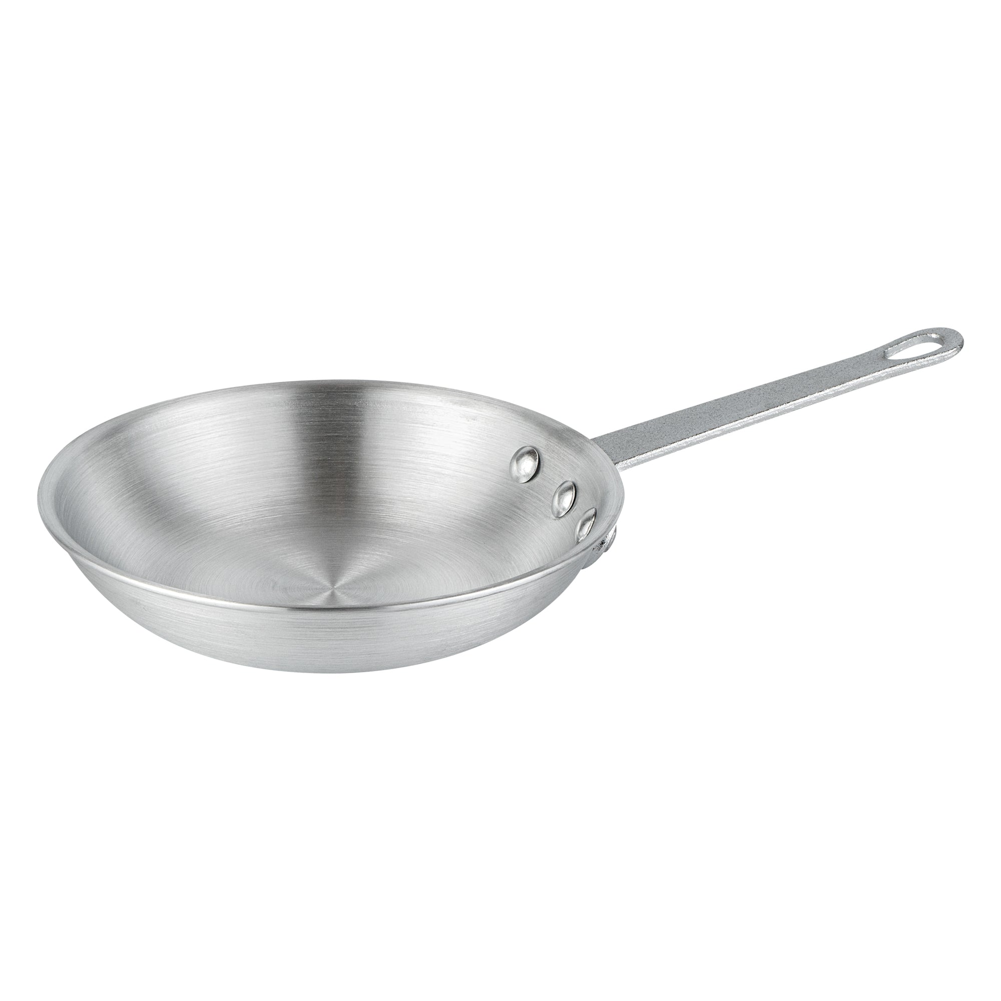 Experience superior cooking performance with our Met Lux Aluminum 7-inch Fry Pans. Crafted from 3.5 mm thick aluminum, these fry pans provide even heat distribution for consistent cooking results. These lightweight aluminum fry pans make it easy to flip, stir, and saute your dishes, while their satin finish is great for searing, sauteing, and browning food. The triple-riveted handle of these frying pans ensures a secure and comfortable grip during use. These skillet pans also feature a convenient hanging hole, making them easy to store and keep within reach. Showcasing a gleaming silver finish, these silver fry pans enhance the aesthetic appeal of your cooking ware. These aluminum skillets, designed for hand washing, ensure optimal care and maintenance. Measuring 13 inches in length by 2.25 inches in height, including the handle, these 7-inch fry pans offer ample space for frying a variety of ingredients. Sold in a 6 count box.