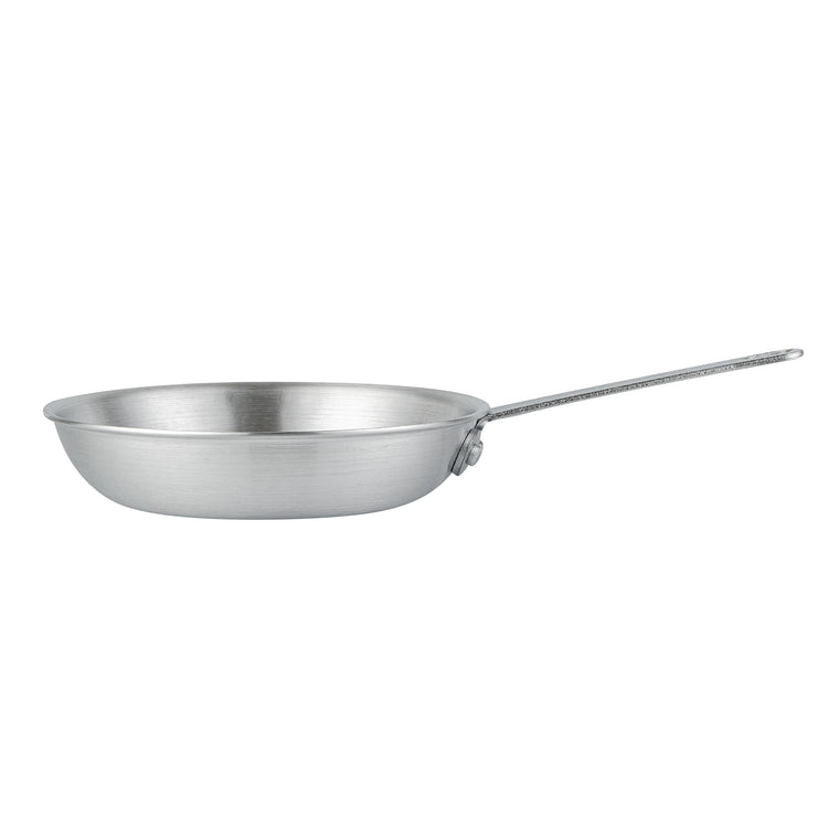 Upgrade your cooking experience with our Met Lux Aluminum 8-inch Fry Pan. Crafted from 3.5 mm thick aluminum, this frying pan provides even heat distribution, ensuring perfectly cooked dishes every time. This lightweight fry pan makes it easy to flip and maneuver your favorite meals. Featuring a satin finish, this aluminum fry pan is ideal for searing and browning. Built with a sturdy, triple-riveted handle, this silver fry pan offers a secure grip during cooking and transport. This skillet pan features an integrated hanging hole, allowing for convenient storage and quick access. Plus, this aluminum skillet is best maintained through hand washing, ensuring optimal care and longevity. Measuring 14.5 inches in length by 3 inches in height, including the handle, this 8-inch fry pan offers ample room for cooking various dishes. Sold in a 1 count box.
