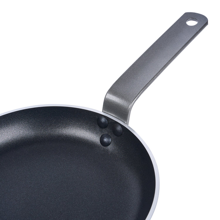 The triple-riveted handle of these aluminum fry pans ensures a secure grip for comfortable cooking. Enjoy enhanced control while maneuvering your pans on the stove.