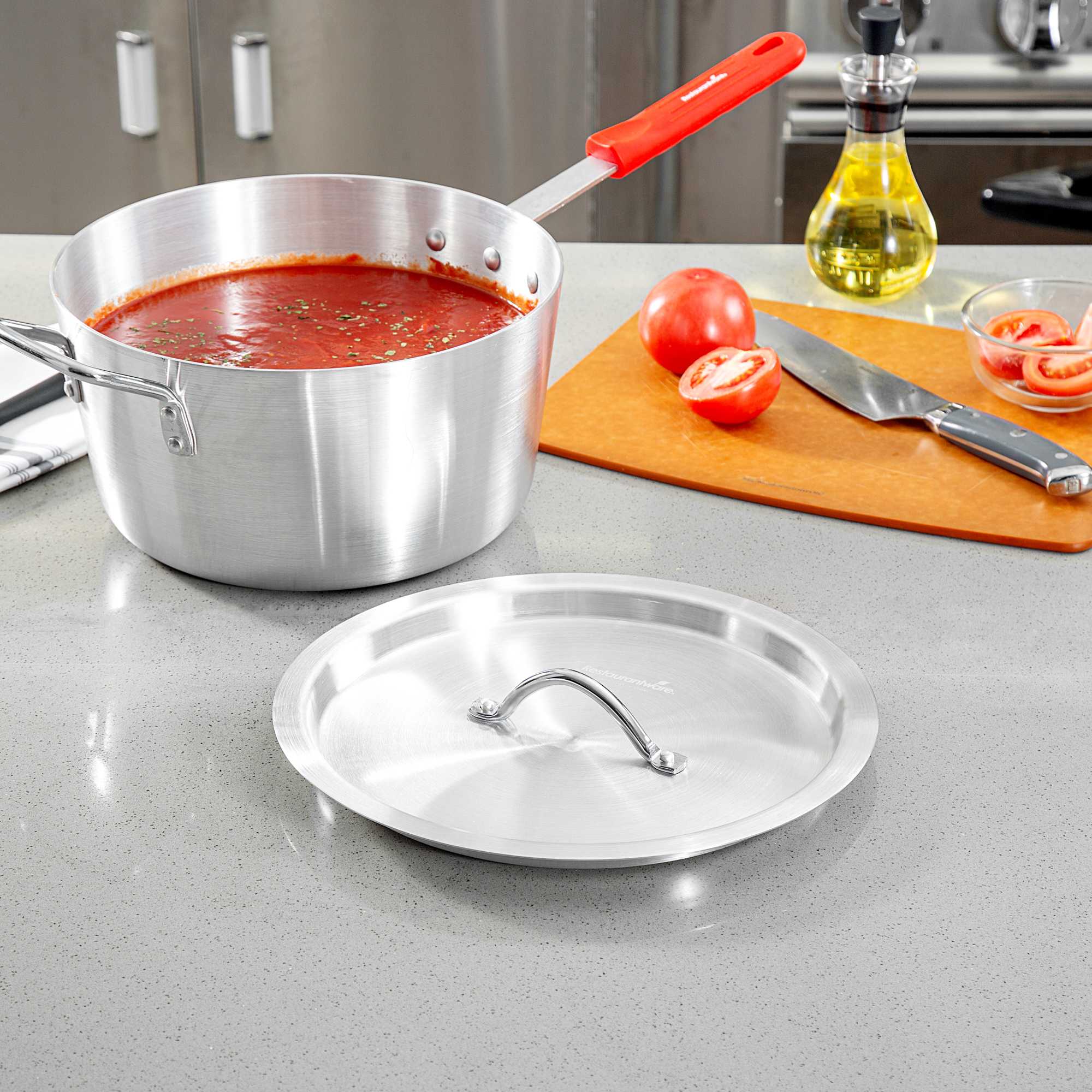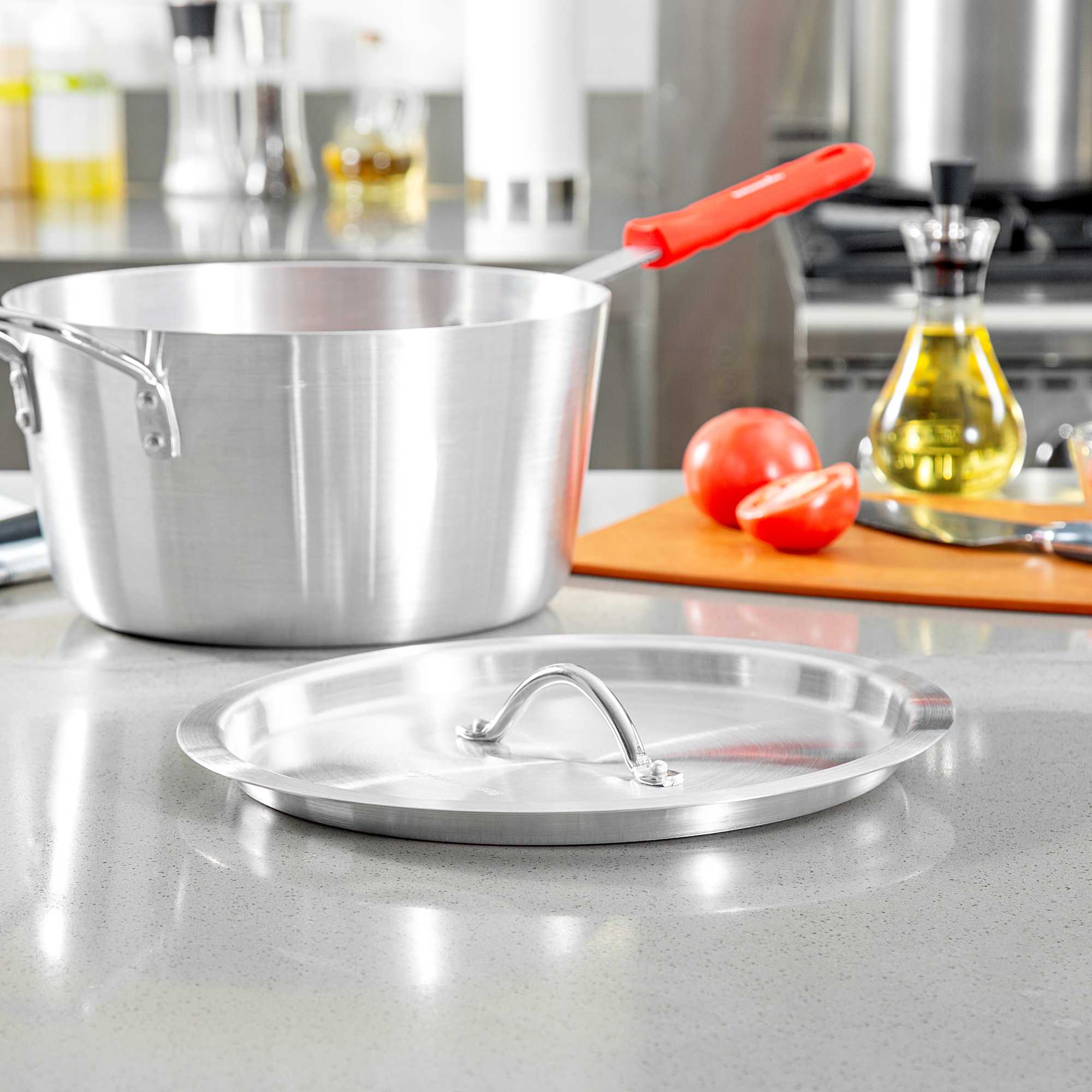 Ensure efficient cooking with our Met Lux Snug Fit Aluminum Lid. This aluminum lid seals tightly to reduce spatter and retain heat, making it a valuable addition to any professional kitchen. Made from corrosion-resistant aluminum, this pan lid provides a secure fit on tapered 7 quart sauce pans (sold separately), promoting even heat distribution for optimal cooking results. Its oven-safe lid design offers versatility for a range of cooking and reheating applications, making it a trusted tool for chefs who demand reliability. With a lightweight construction measuring 12.21 inches by 12.21 inches, it is easy to handle and move between stovetop and oven. An easy-to-grab handle minimizes burn risk in busy kitchens, ensuring safety and efficiency during peak hours. Enhance your kitchen’s efficiency and protect your culinary creations with this essential cookware accessory. Sold in a 6 count box.