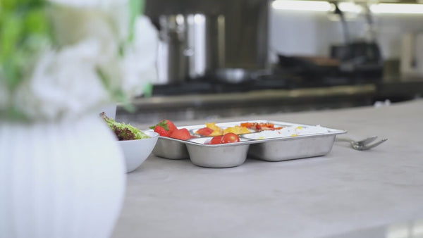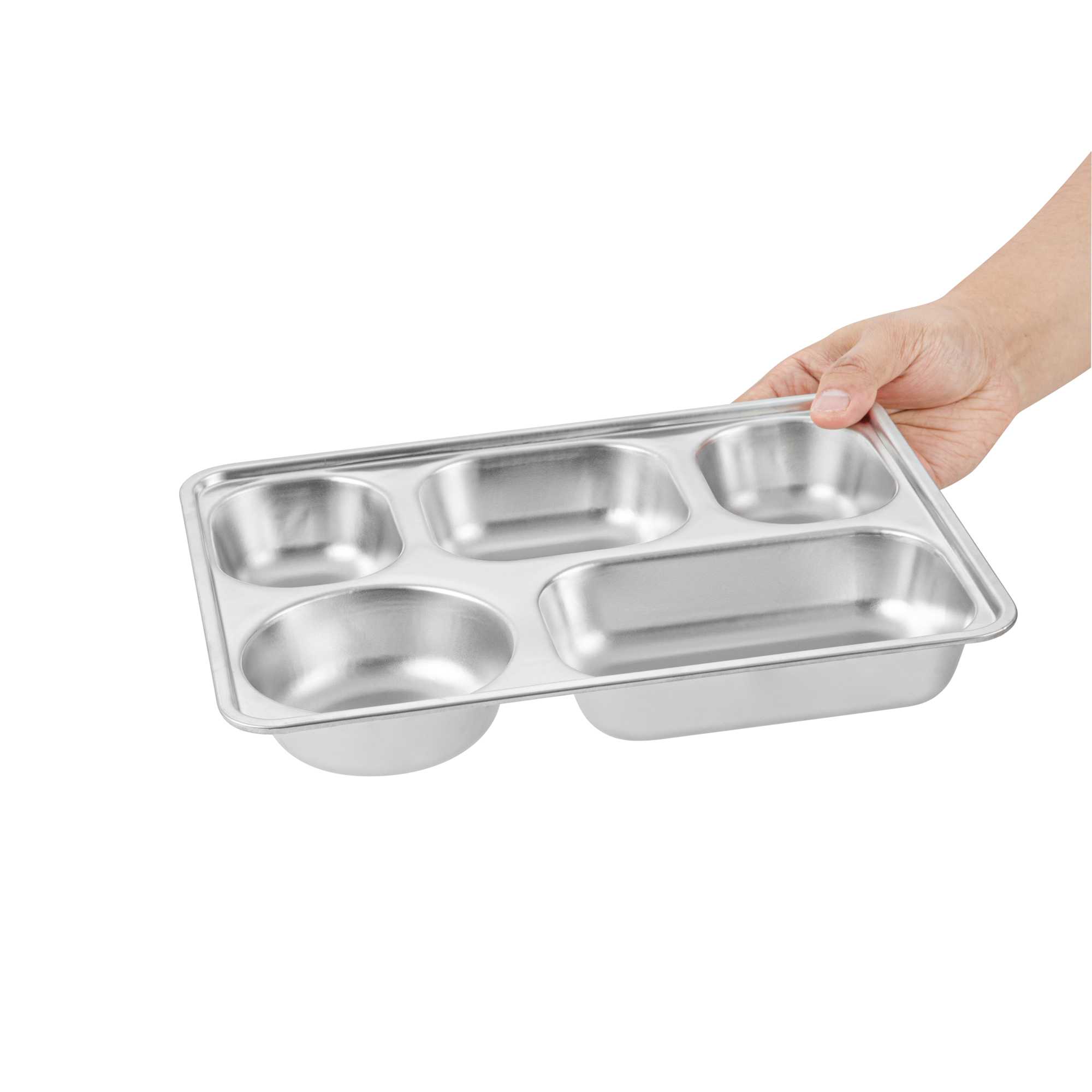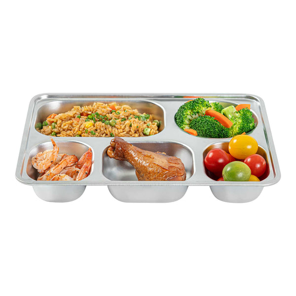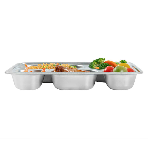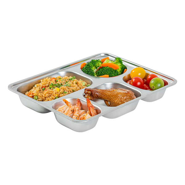 AMBIDEXTROUS RECTANGLE STAINLESS STEEL TRAY - 5 COMPARTMENTS