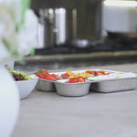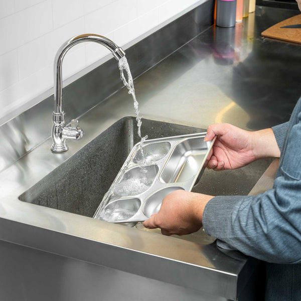 Enhance meal presentation with our Met Lux Ambidextrous Rectangle Stainless Steel Trays. Crafted from durable stainless steel, this cafeteria food tray is designed with a five-section layout that simplifies portion control and elevates food presentation, making it ideal for foodservice settings. The ambidextrous design ensures comfortable and efficient use for both left- and right-handed users, enhancing versatility in fast-paced kitchen settings. Its dishwasher-safe feature ensures quick, sanitary clean-up, enhancing operational efficiency in bustling cafeterias. With dimensions of 11.0 inches in length, 8.6 inches in width, and 1.6 inches in height, this tray provides ample space for a variety of dishes while maintaining a sleek, stackable design for convenient storage. Sold in a 20 count box.