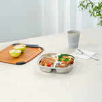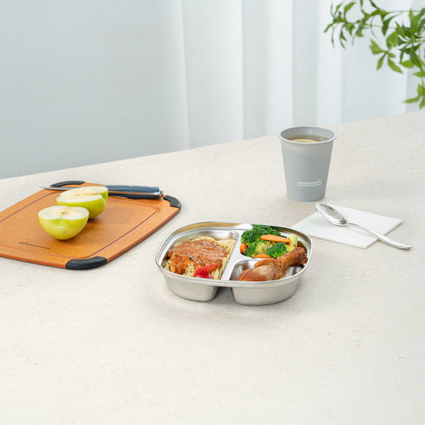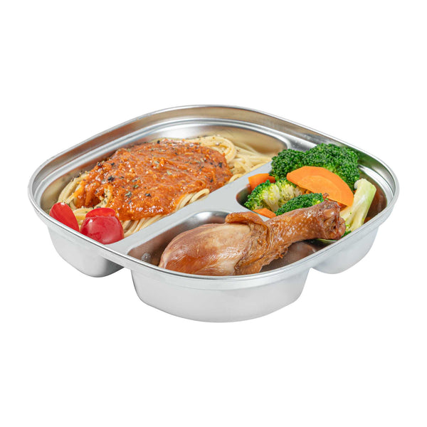 AMBIDEXTROUS SQUARE STAINLESS STEEL TRAY - 3 COMPARTMENTS