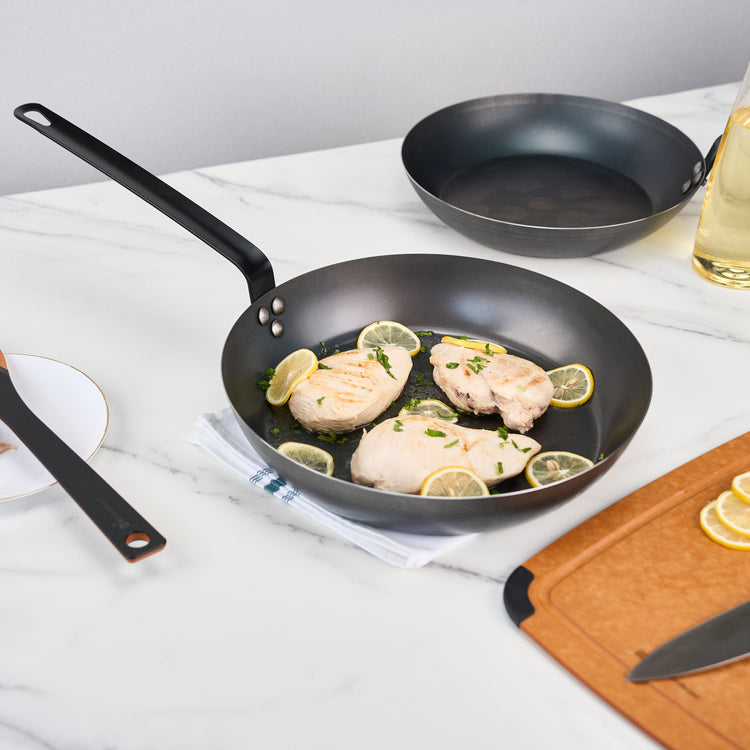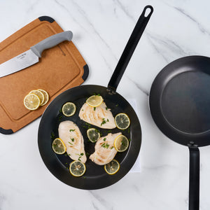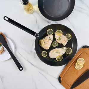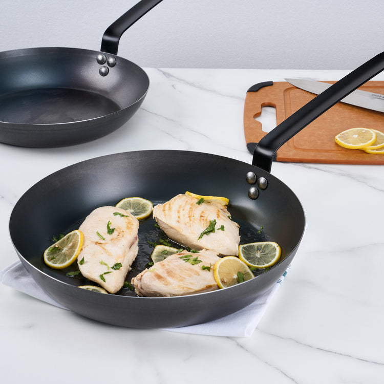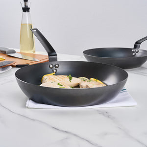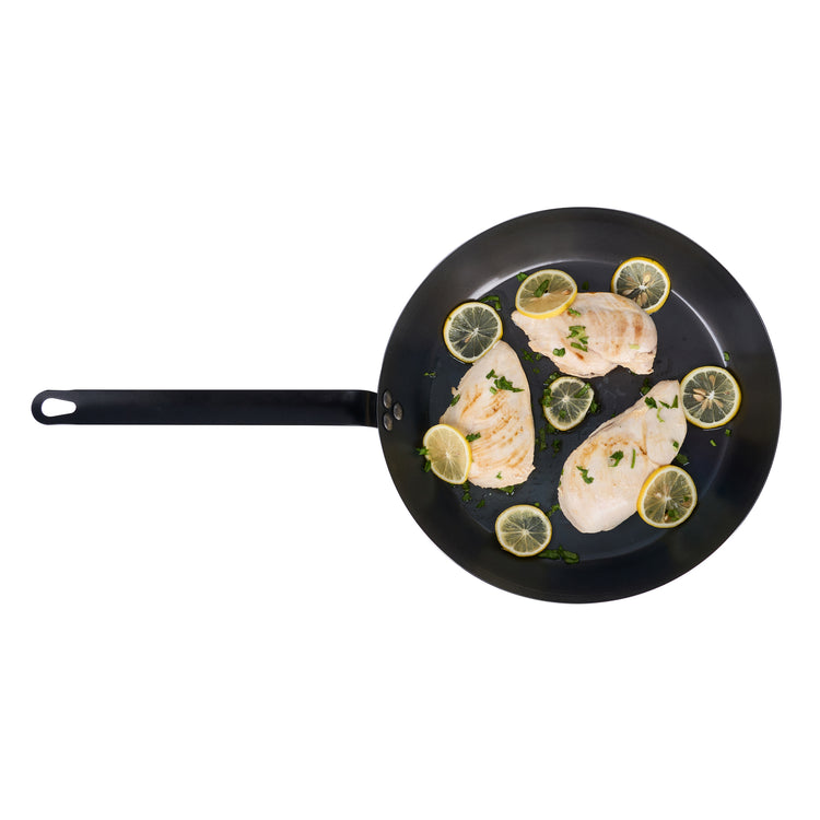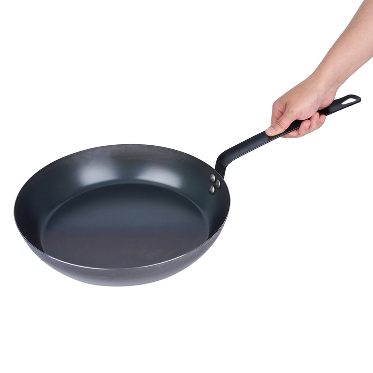 Enhance your kitchen’s efficiency with versatile cookware. The Met Lux Carbon Steel Frypan offers an induction-safe design, making it ideal for varied cooking techniques in bustling kitchens. Crafted from 1.5 millimeters thick carbon steel, this frypan ensures robust durability, perfect for enduring the rigors of demanding culinary settings and enhancing your carbon steel frypan collection. Its triple-riveted handle guarantees a secure grip, allowing chefs to maneuver effortlessly and safely during cooking sessions, particularly when using a nonstick fry pan. Measuring 22.84 inches in length, this black steel pan provides excellent heat distribution, ensuring even cooking results every time. Providing a seamless transition from stovetop to oven, its oven-safe construction adapts to different cooking styles, maximizing kitchen versatility. Elevate your kitchen’s operational efficiency by integrating this durable and reliable cookware into your routine. Sold in a 1 count box.
