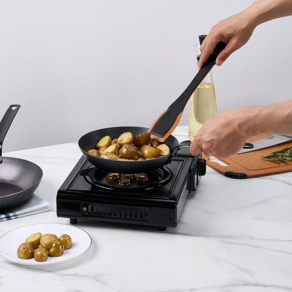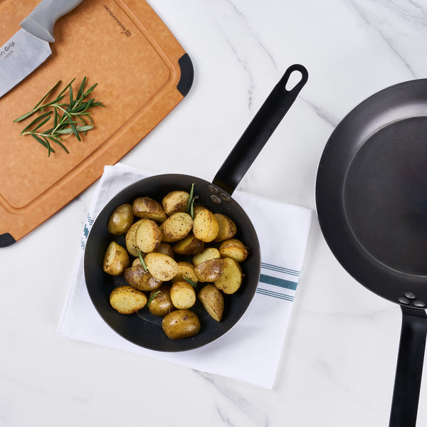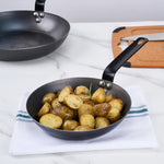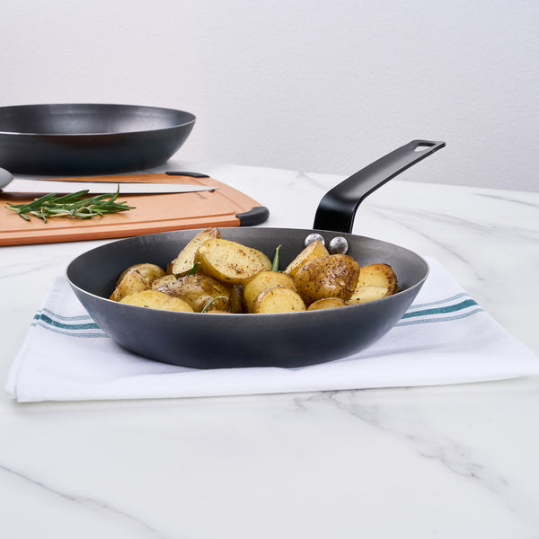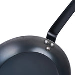 Effortlessly enhance your kitchen's efficiency with reliable cookware. The Met Lux Carbon Steel Frypan is crafted from 1.5 mm thick carbon steel, offering robust durability ideal for demanding culinary settings. This induction fry pan features an induction-safe design, accommodating versatile cooking styles and ensuring even heat distribution across its 15.55-inch length. A triple-riveted handle provides a secure grip and added durability, allowing chefs to maintain control during busy service periods. Its lightweight construction and oven-safe capability make this nonstick frypan a versatile tool for any commercial kitchen. Designed to meet the needs of professional chefs, this carbon steel frypan is an essential addition to any foodservice operation looking to optimize their cookware with steel's heat-retention benefits. Sold in a 1 count box.