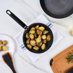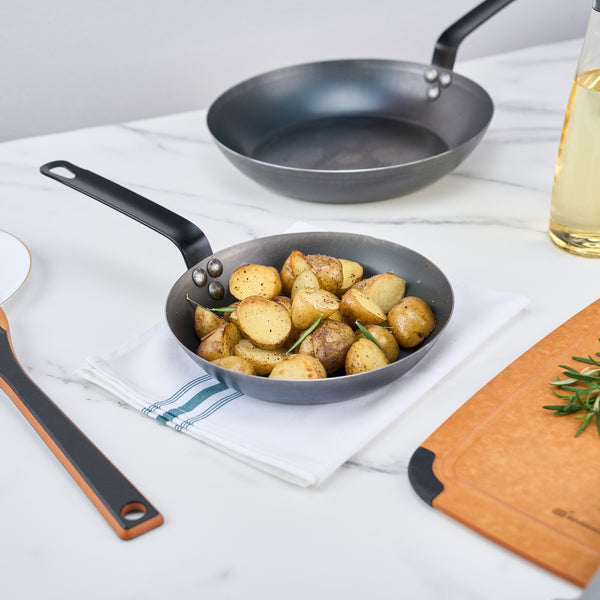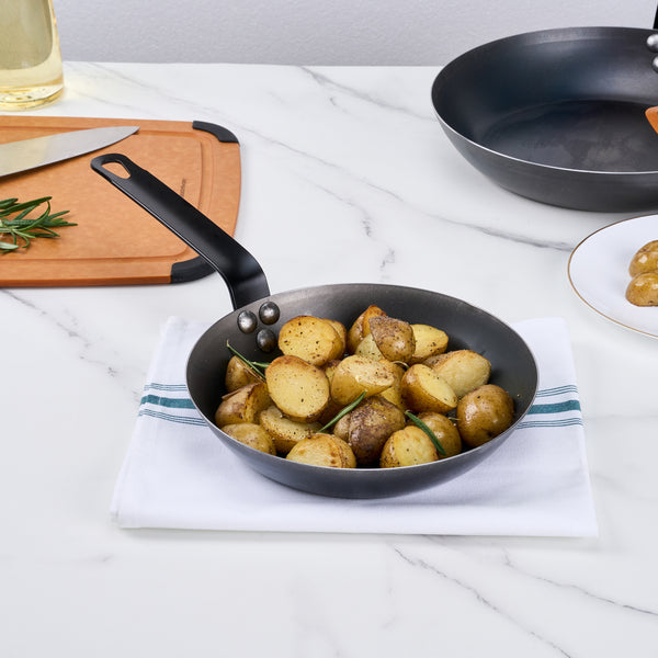 Effortlessly enhance your kitchen's efficiency with reliable cookware. The Met Lux Carbon Steel Frypan is crafted from 1.5 mm thick carbon steel, offering robust durability ideal for demanding culinary settings. This induction fry pan features an induction-safe design, accommodating versatile cooking styles and ensuring even heat distribution across its 15.55-inch length. A triple-riveted handle provides a secure grip and added durability, allowing chefs to maintain control during busy service periods. Its lightweight construction and oven-safe capability make this nonstick frypan a versatile tool for any commercial kitchen. Designed to meet the needs of professional chefs, this carbon steel frypan is an essential addition to any foodservice operation looking to optimize their cookware with steel's heat-retention benefits. Sold in a 6 count box.