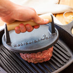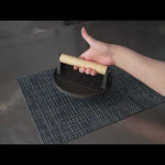 BLACK CAST IRON GRILL PRESS - WITH WOODEN HANDLE