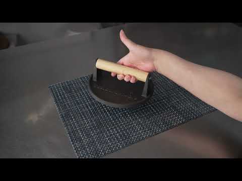 Keep food flat when cooking with our Met Lux Black Cast Iron Grill Press. Constructed from premium cast iron, this grill press has high heat retention so it stays hot to thoroughly and evenly cook both sides of your meat patties, bacon, sandwiches, and other foods. Featuring a wooden handle, this round grill press keeps your hands cool when pressing down on meat to comfortably remove unwanted grease. With an enamel coating, this black grill press prevents food from sticking for a quick and easy release. This cast iron grill features a grooved underside that prevents it from shifting on food and creates mouthwatering grill marks to ensure your steaks look as good as they taste. With a high-quality construction, this rust-resistant iron grill press is built to endure rigorous use and maintain its premium design for long-lasting use. Weighing 2.4 pounds, this grill press with wooden handle measures 7 inches in diameter and is ideal for use on stovetops or grills. Sold in a 1 count box.