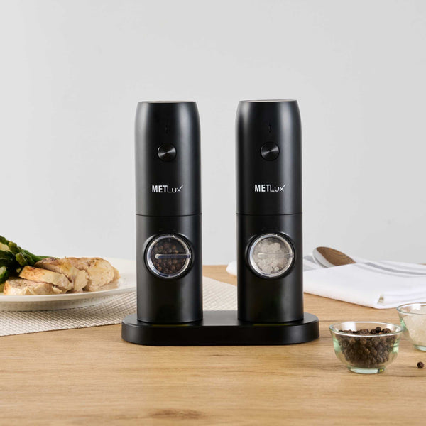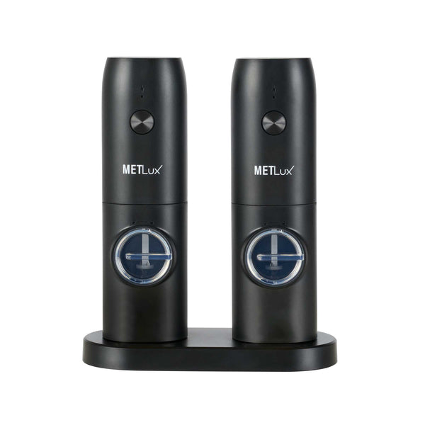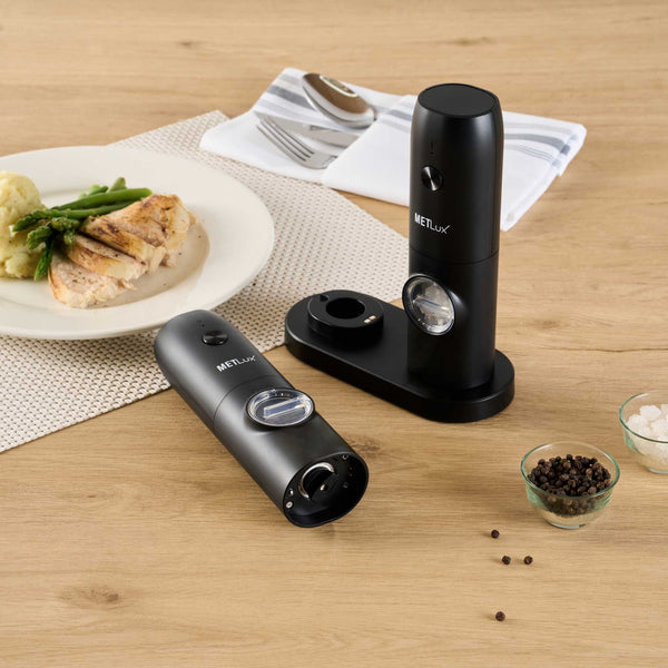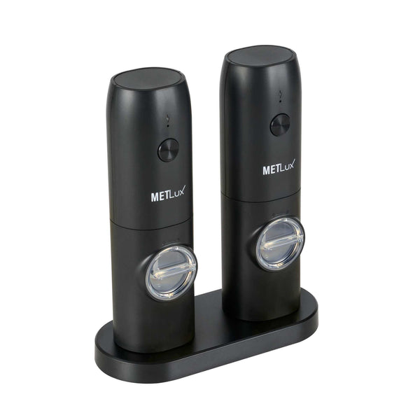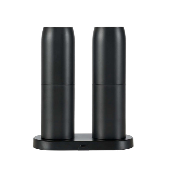 BLACK ELECTRIC SALT AND PEPPER GRINDER SET - WITH CHARGING BASE