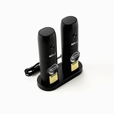 Ensure consistent seasoning with the Met Lux Electric Salt Grinder. This automatic spice grinder features a convenient charging base, guaranteeing it is always ready to enhance your culinary creations. Its built-in LED light is perfect for low-light environments, allowing chefs to accurately season dishes without missing a grain. The ceramic core of this usb rechargeable spice grinder maintains its sharpness over time, delivering precise and reliable grinding for long-term use. Measuring 6.5 inches in length and crafted from durable stainless steel, this grinder withstands the demands of busy kitchens and adds a sleek touch to any setting. Elevate your foodservice operations by incorporating this reliable tool into your kitchen arsenal. Each order includes 1 Met Lux Electric Salt Grinder.