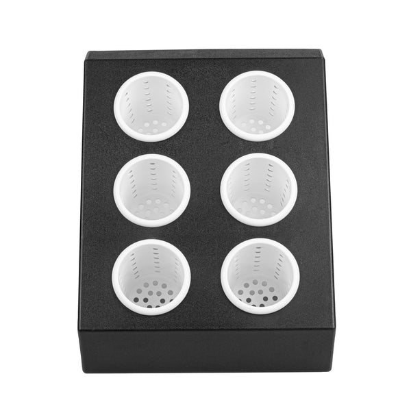 BLACK PLASTIC FLATWARE ORGANIZER - 6 HOLES, PLASTIC CYLINDERS
