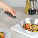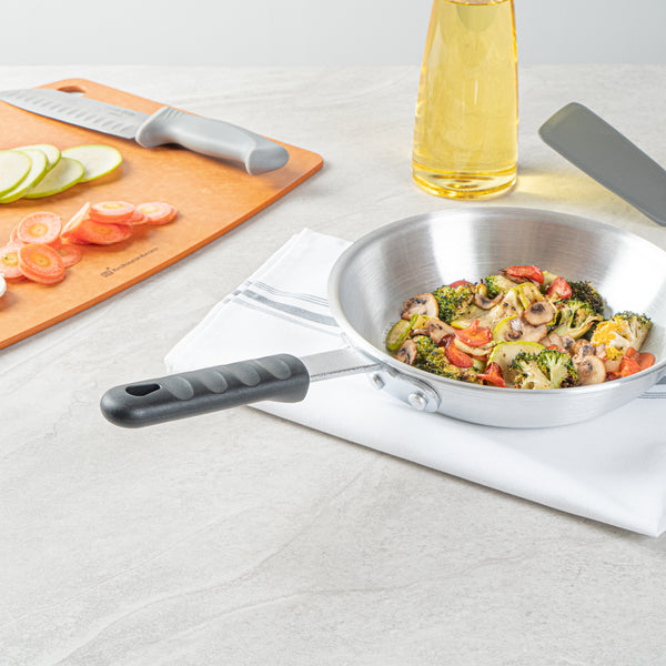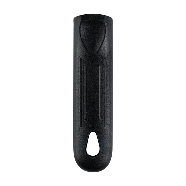Enhance kitchen safety with a reliable silicone pan handle cover. The Met Lux Removable Silicone Pan Handle Cover offers a removable design, allowing chefs to switch between pans seamlessly, increasing efficiency during service. Molded indentations provide a secure, non-slip handle grip, reducing the risk of slips and burns while ensuring comfort. Made from heat-resistant silicone, this handle cover withstands temperatures up to 450 degrees Fahrenheit, making it ideal for busy professional kitchens. Its dishwashable silicone material facilitates easy cleanup, saving valuable time and effort in bustling foodservice environments. With dimensions of 4.3 inches by 1 inch by 0.7 inch, it fits snugly on 8-inch and 9-inch aluminum pans. Perfect for catering events or cooking classes, this heat-resistant handle sleeve promotes better cooking practices and maximizes limited storage space with its convenient loop. Each order includes 1 Met Lux Removable Silicone Pan Handle Cover.