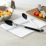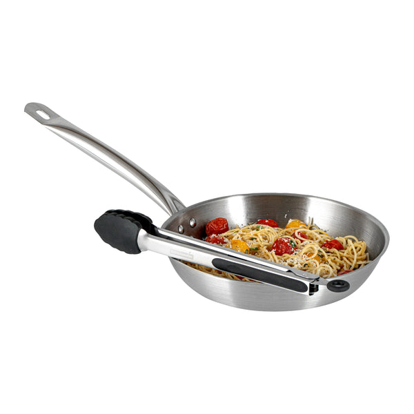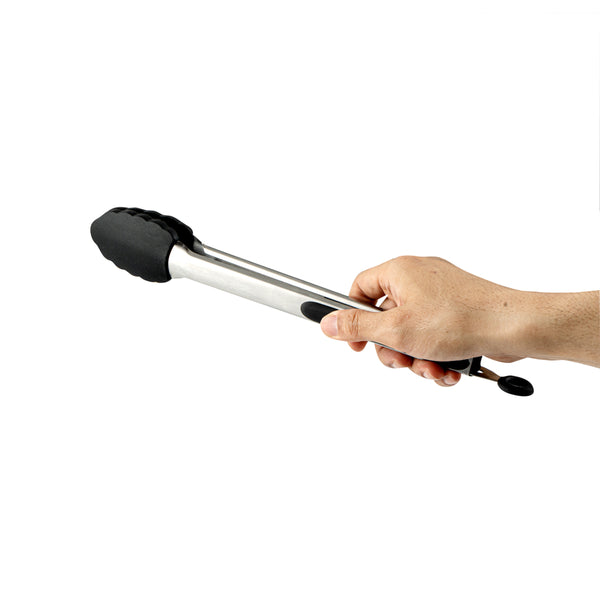 These silicone kitchen tongs feature a stainless steel body with an easy pull lock, making storage a breeze. The sturdy build ensures chores like tossing salad, flipping steaks, and more are managed effortlessly.