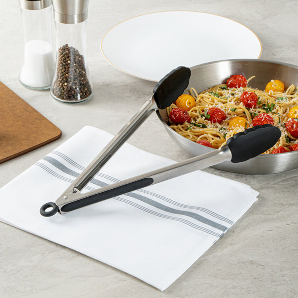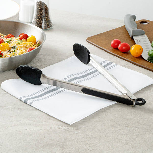 These professional chef tongs are available in two sizes and an array of appealing colors to match individual kitchen aesthetics. Also available as a set of two.