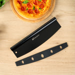 BLACK STAINLESS STEEL PIZZA CUTTER / ROCKER - WITH COVER