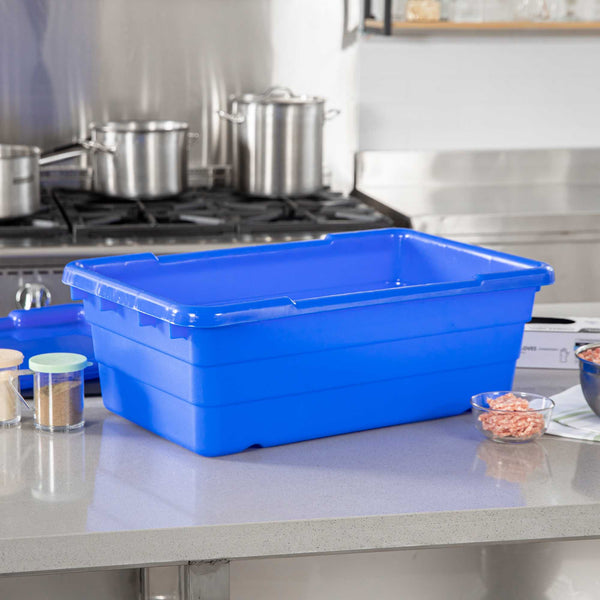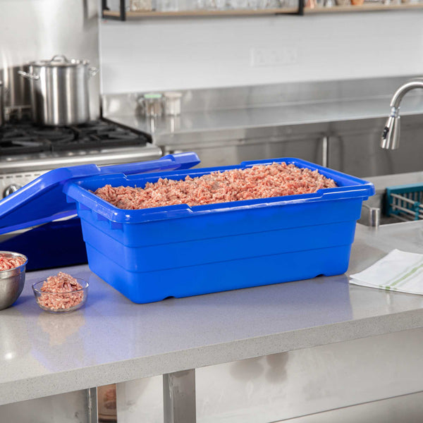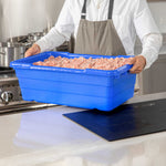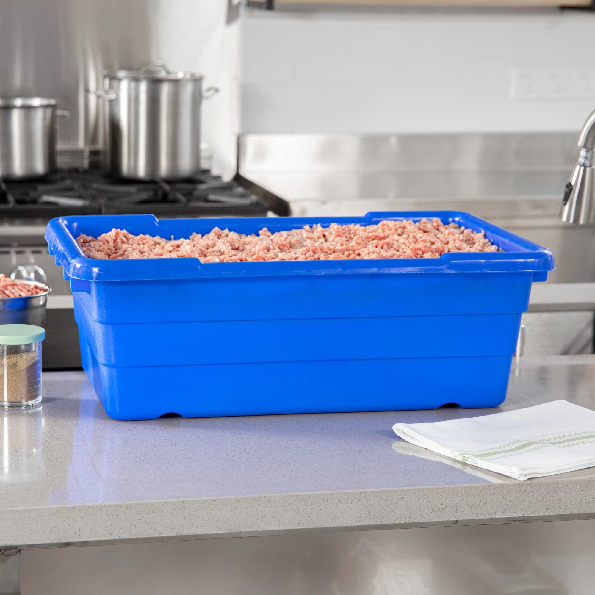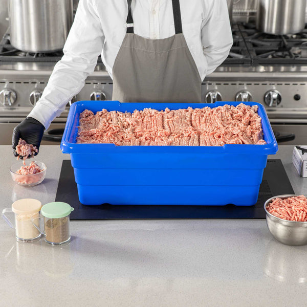 Optimize your kitchen operations with space-saving storage solutions. The Met Lux Stackable Plastic Meat Lug boasts a stackable design that maximizes storage in limited spaces, making it a perfect fit for bustling kitchens. This versatile meat lug is constructed from blue plastic, featuring a dishwasher-safe finish that ensures quick and easy cleaning, a must-have feature for maintaining hygiene standards. Its freezer-safe construction preserves meats for longer periods, reducing food waste and enhancing inventory management. As a reliable food transport tote, it incorporates a smooth interior surface with a wide corner radius, facilitating fast, hassle-free cleanup. The ability to integrate into a color-coded system helps reduce the risk of cross-contamination, promoting safer food handling practices. Ideal for cross stacking or nesting with similar-sized tote boxes, this plastic tote box is designed for efficient use in any professional kitchen. Each order includes 10 Met Lux Stackable 24.8 inches by 15.7 inchesby 8.7 inches Meat Lug.
