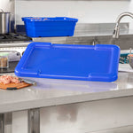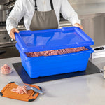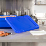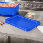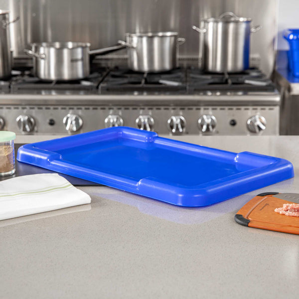 Safeguard your food with a contaminant-resistant seal. The Met Lux Blue Plastic Meat Lug Lid offers a reliable solution for keeping contents free from dust and debris, with its blue plastic design that measures 15.9 inches in width. This meat lug lid not only protects against airborne particles but also contains unpleasant odors, ensuring cleanliness in your kitchen. Its recessed design with a raised rim allows for secure stacking, making it an ideal stackable lid for efficient storage in busy foodservice operations. Additionally, this food storage lid is dishwasher-safe, simplifying cleaning and maintaining hygiene standards. Enhance your kitchen's organization and cleanliness with this user-friendly lid. Each order includes 10 Met Lux Blue Plastic Meat Lug Lid.