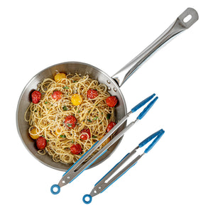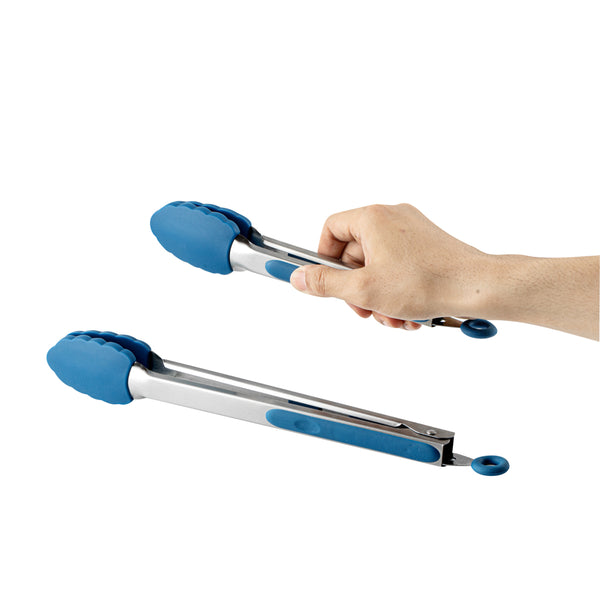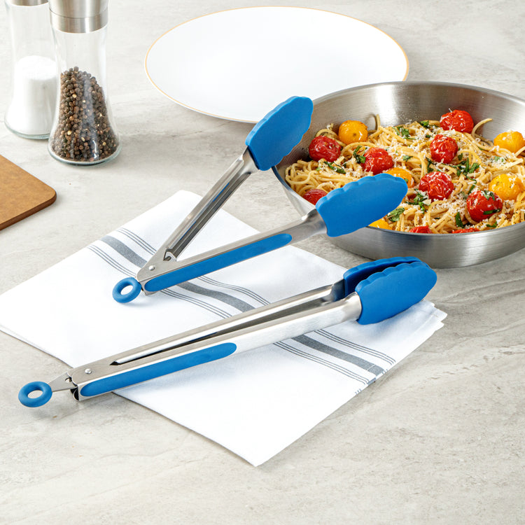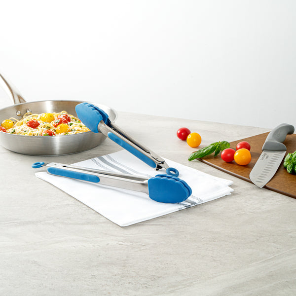 BLUE STAINLESS STEEL 2-PIECE KITCHEN TONG SET - SCALLOPED