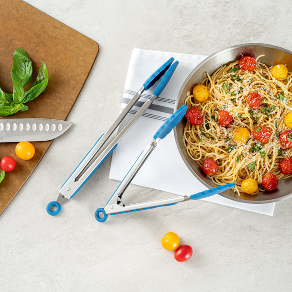 These professional chef tongs are available in two sizes and an array of appealing colors to match individual kitchen aesthetics. Also available as a set of two.